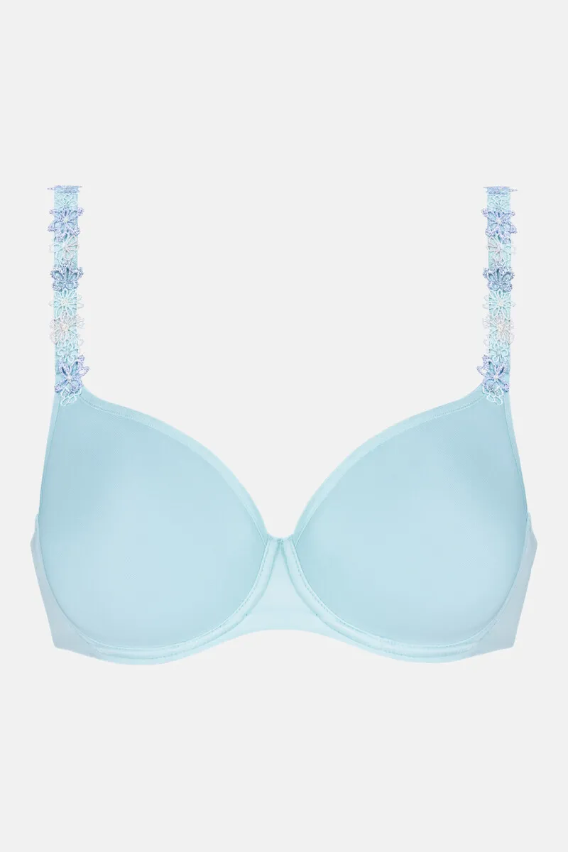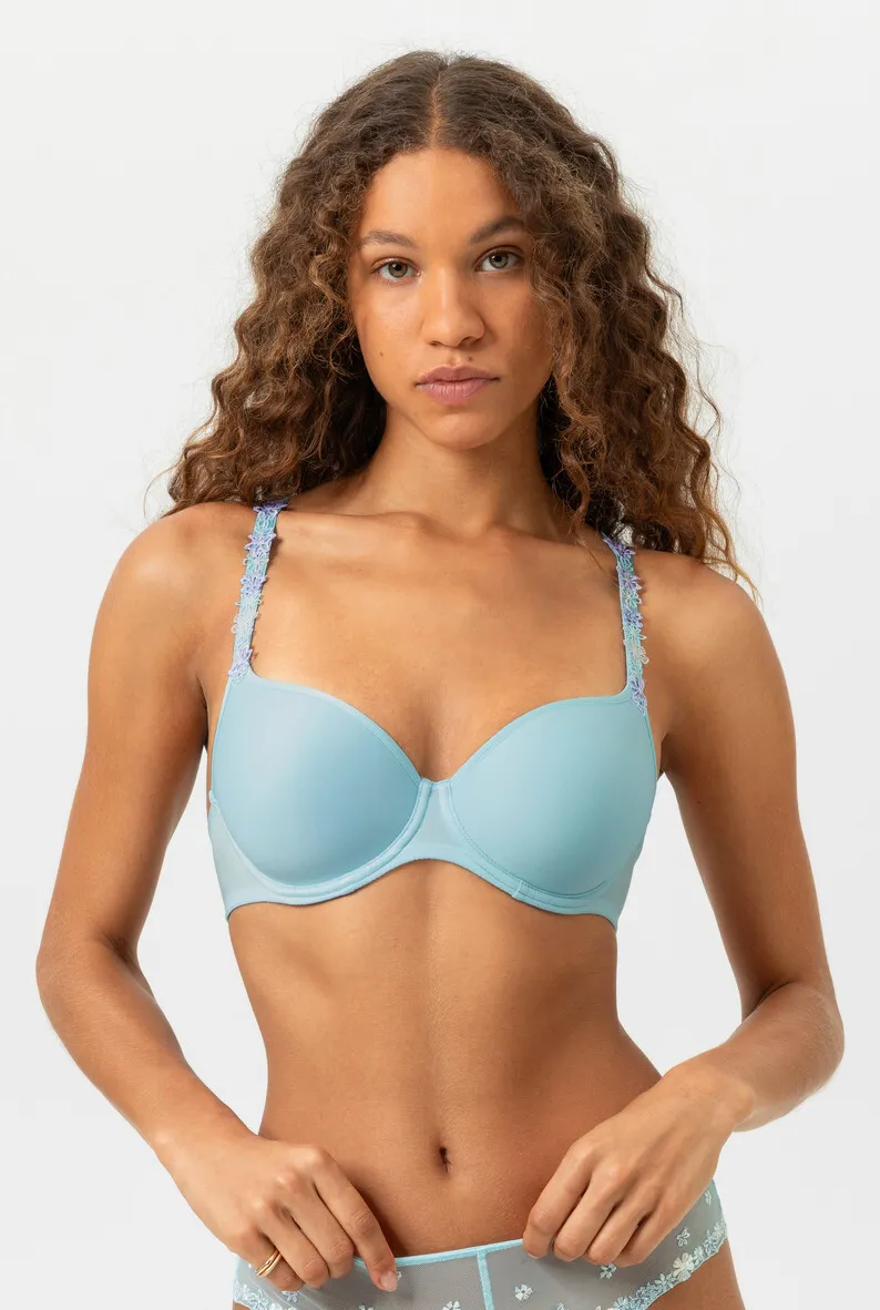 Бюстгальтер-спейсер Мэй Прекрасная Джоан светло-голубого цвета бриз - Mey Pretty Joan 1350018 1749 Breezy Blue. Плотная дышащая чашка на косточках. Чашки выполнены из инновационного 3D-материала. Он легко пропускает воздух, чашка достаточно тонкая и сверхлёгкая. Но при этом чашка сохраняет форму и создает гладкий силуэт. Косточки с закруглениями, надежно вшиты, не выскакивают. Бретели с регулировкой длины. Основание бретелей - с красивой кружевной аппликацией. Кружево выполняет важную функцию - предотвращает растяжение бретелей и обеспечивает поддержку груди. Пояс застегивается на сзади на крючки в 3-х положениях.