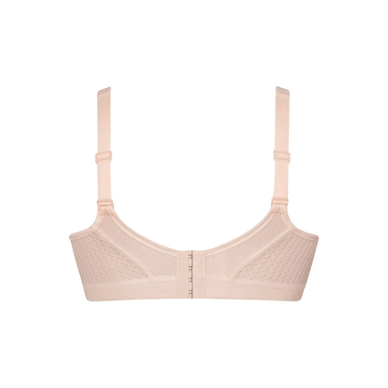 Бюстгальтер значительно снижает вибрацию и колебание нежных тканей груди. Широкий пояс по бокам и на спине, застегивается на 4 крючка. Под чашками - широкая эластичная лента. Двойные широкие бретели с регулировкой длины. Под бретелями - специальные уплотнители-подушечки, уменьшающие давление и распределяющие вес.