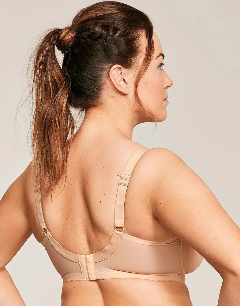 Спортивный бюстгальтер для большой груди Эломи Энерджиз телесно-бежевого цвета - Elomi Energise Sports Bra 8041 Nude NUE. Обеспечивает необходимую поддержку во время тренировок и при этом выглядит как бюстгальтер в классическом стиле, без выраженного спортивного дизайна. Энерджиз подходит и для занятий спортом со средней степенью нагрузки, а также для повседневного использования.