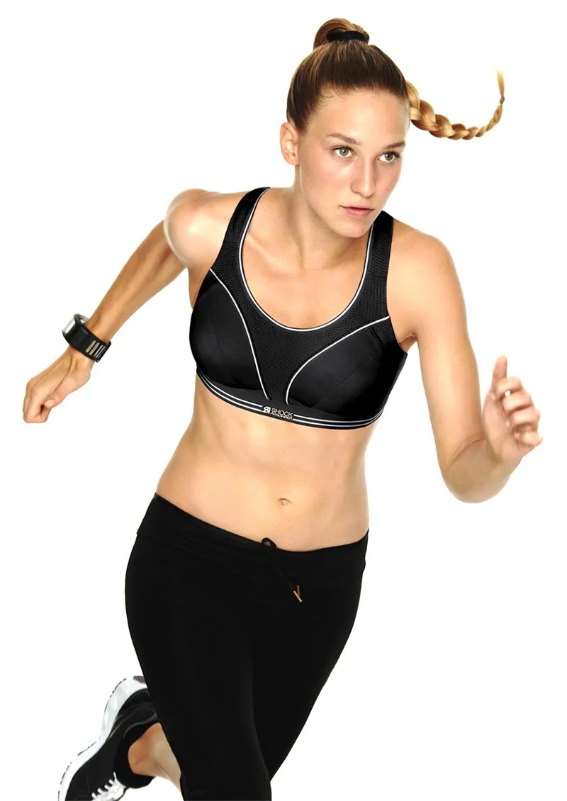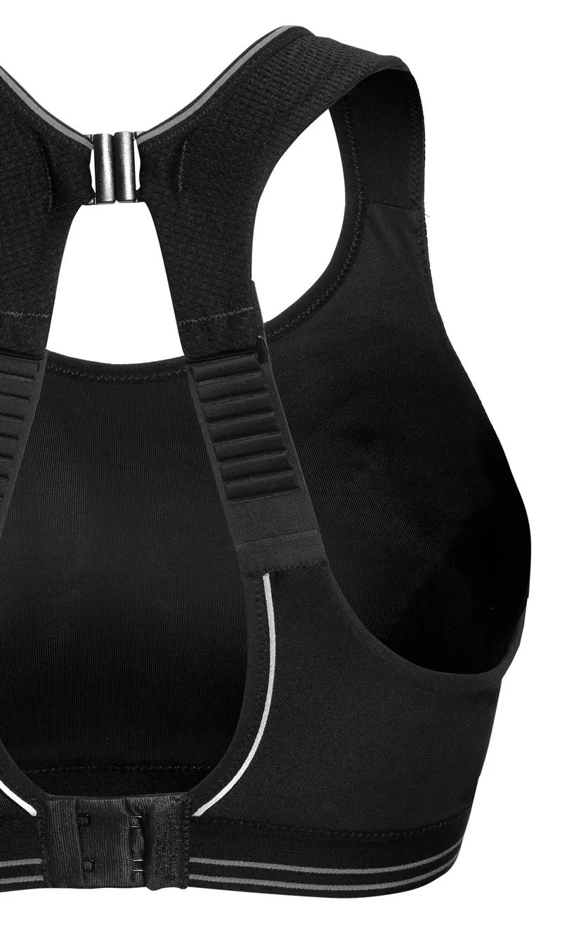 Спортивный бюстгальтер для бега Shock Absorber черного цвета - Ultimate Run Bra 5044. Мягкая, трехслойная чашка без косточек, на широком, эластичном поясе-резинке.