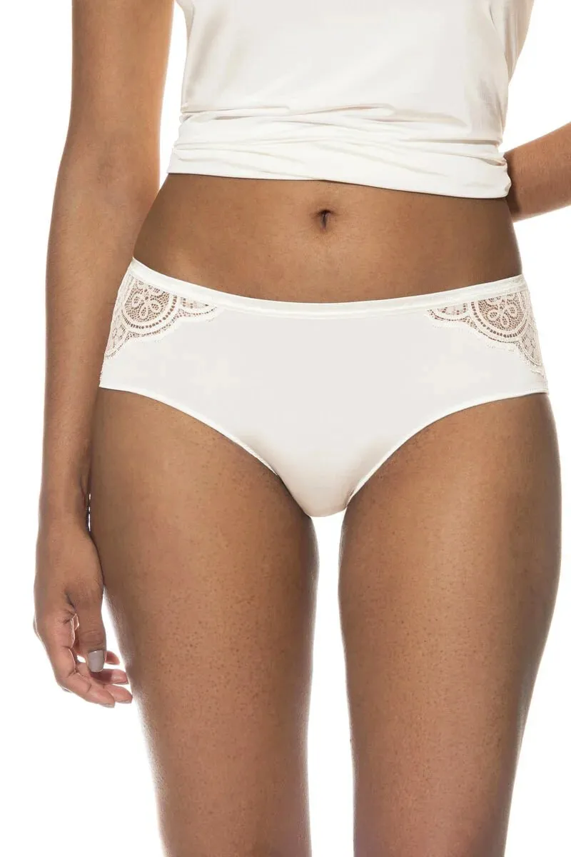 Нижнее белье Mey - это всегда безупречное качество, безопасность для здоровья и комфорт. иТрусы-шорты хипстер Мэй Поэтри Фейм ванильного цвета шампань - Mey Poetry Fame Hipster 79134 - 5 Champagner. Выполнены из шелковистой, матовой, непрозрачной ткани с кружевными вставками. Ластовица из 100% хлопка. Чуть заниженная посадка оставляет открытым живот. По линии талии проходит узкая эластичная окантовка. Эластичный шов зиг-заг по краю выреза ног.