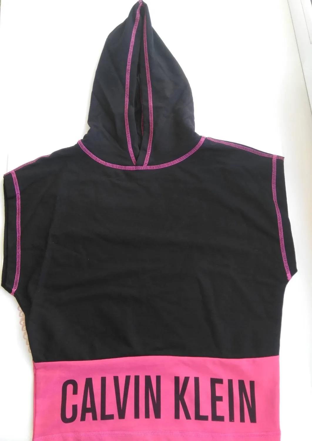 Худи для девочек Кельвин Кляйн черного цветя с ярко-розовой отделкой.