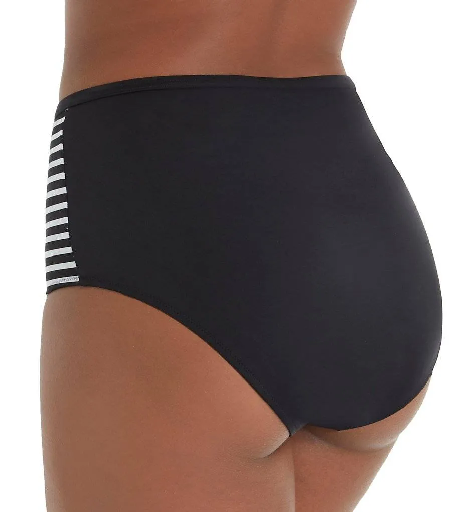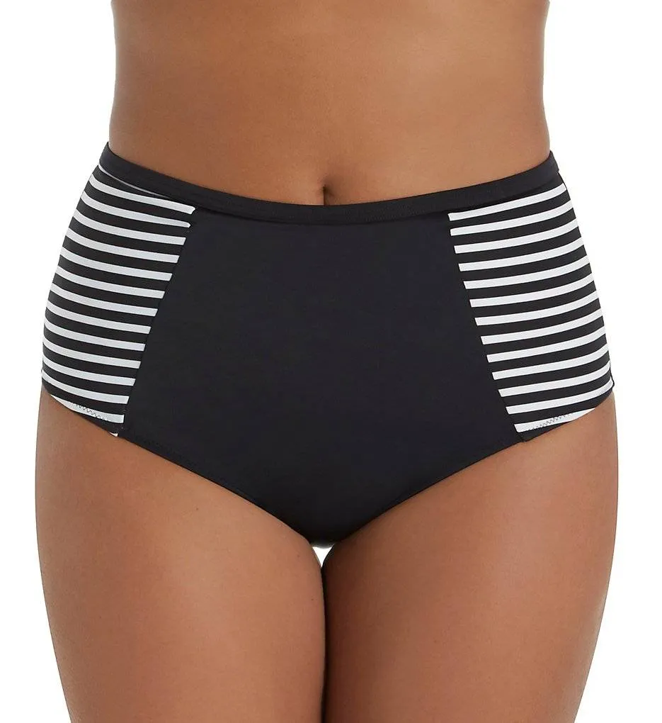 Высокие плавки Эломи Малибу черные со вставками в полоску. Завышенная линия талии, на резинки