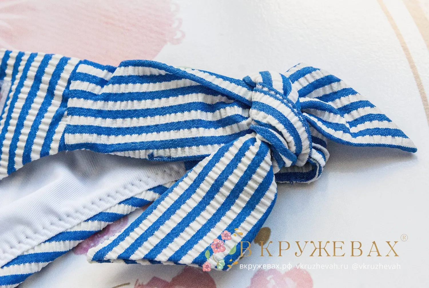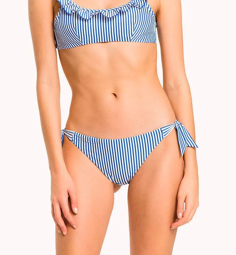 Открытые женские плавки-бикини на завязках Томми Хилфигер белые в тонкую голубую полоску.