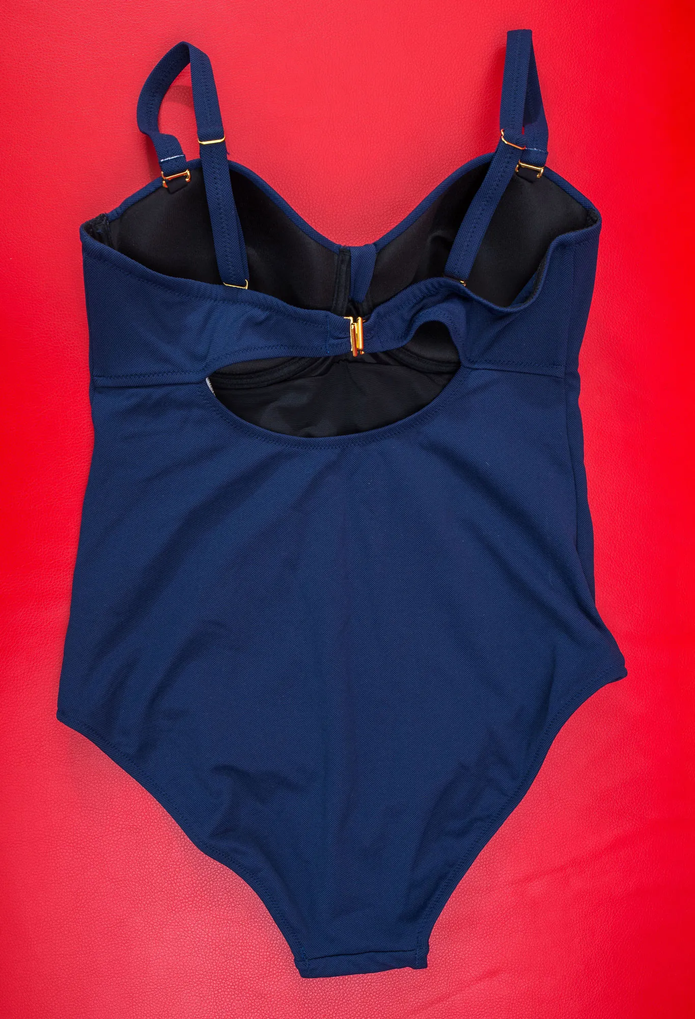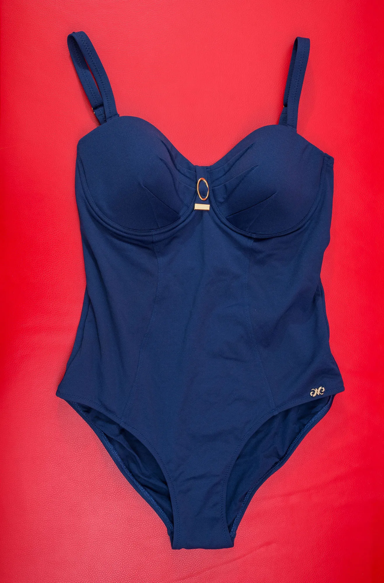 Слитный испанский купальник-бандо Нурия Феррер Миранда темно-синий. Мягкая чашка на кости. Отстёгивающиеся бретели.