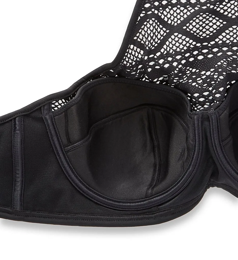 Роскошный кружевной топ-хальтер купальника Freya Сандэнс с отличной поддержкой для большой груди. Чашки со специальным трехчастным кроем, с сочетанием вертикального и горизонтального швов, на косточках, уплотненные. Сверху чашки закрывает кружевной слой, создающий красивый силуэт благодаря выточкам.