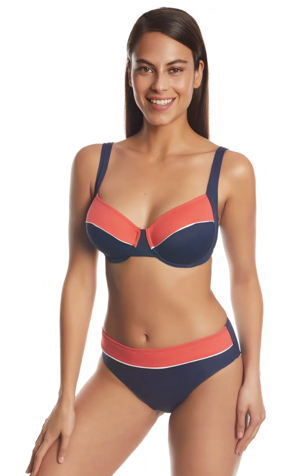 Верх испанского раздельного купальника Докор Колор Блок красно-синего цвета - Docor Color Block 3021 D 150. С защитой от ультрафиолета, фактор защиты: UPF 50+. Мягкая чашка на косточках. Узкие бретели с регулировкой длины.