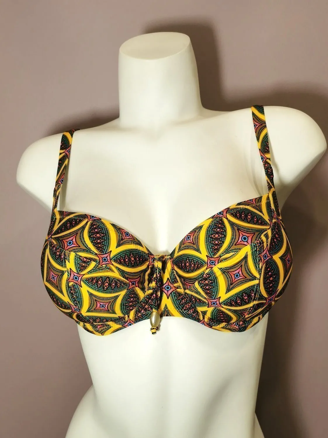 Верх купальник Антижель Лиз Шармель Африка с мягкими чашками на косточках - Antigel Lise Charmel Jaune Africa 3556. Эффектный принт с необычными визуальными эффектами.