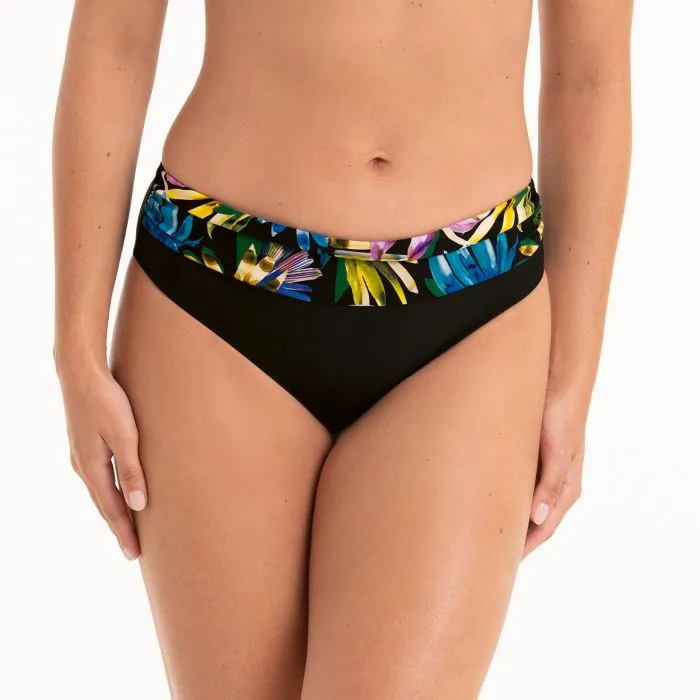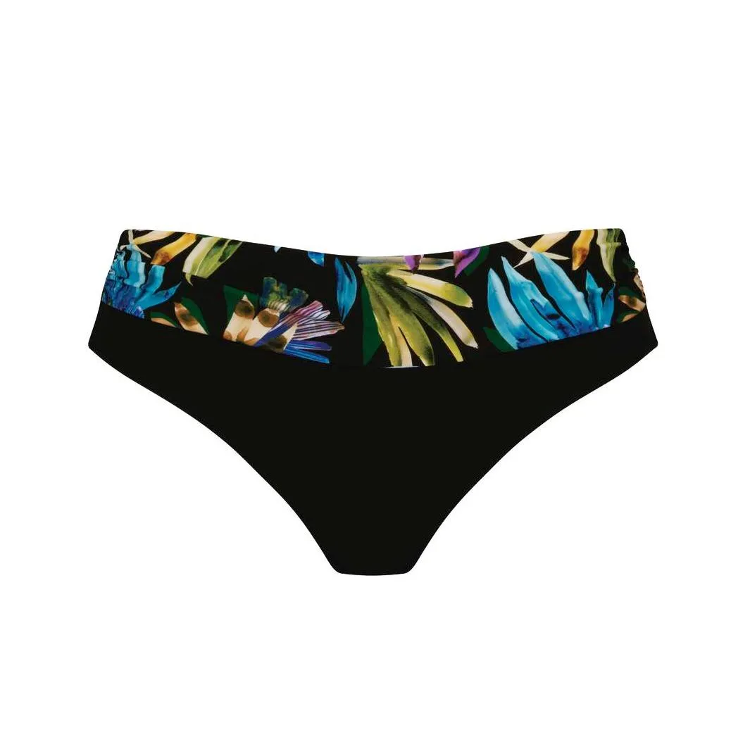 Классические плавки с широким поясом-отворотом Анита Фестиваль агавы с ярким тропическим принтом на черном фоне - Anita CHIARA Bikinihose M5-8477-0 815 agave. Стильное сочетание однотонной ткани и принта. Широкий пояс можно свернуть, занизив линию талии.