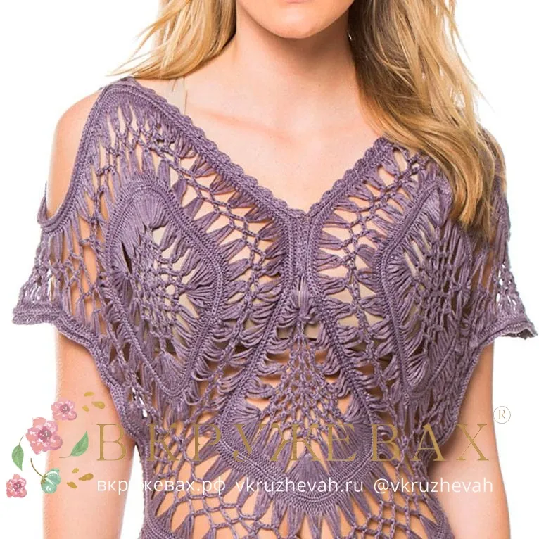 Ажурная, кружевная туника Pilyq в нежно-фиолетовом цвете Аметист. На дополнительных фотографиях размер M/LАртикул: AME489T