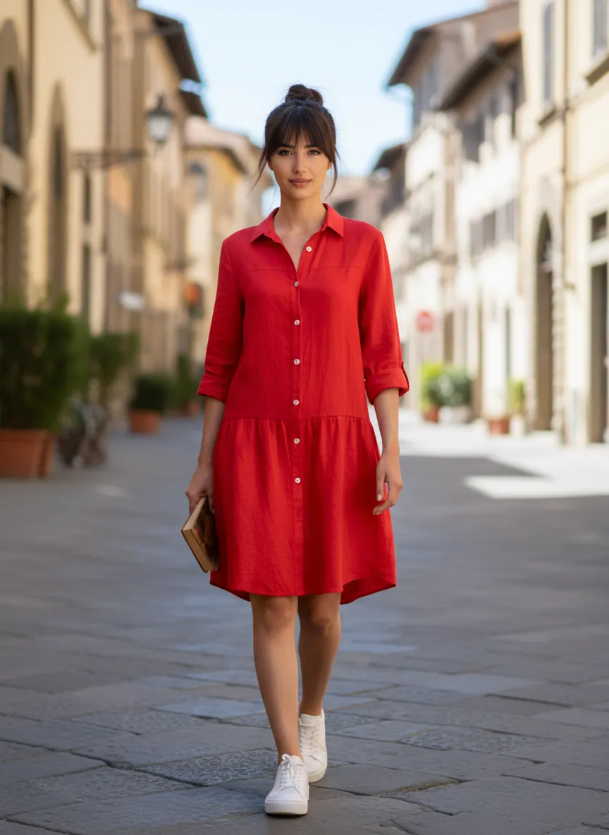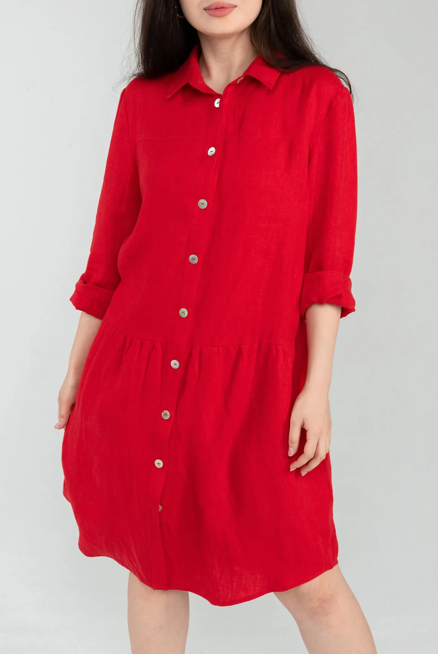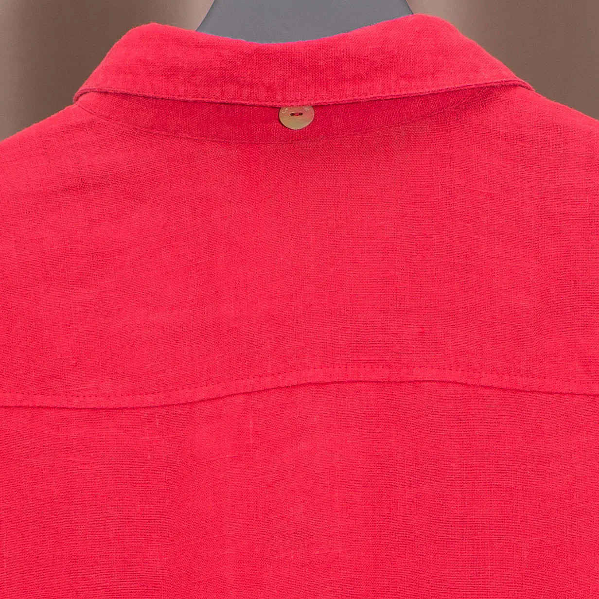 Платье-рубашка из 100% льна исключительного качества - Кабана Шик Парма Энзи ярко-красного цвета Черешня. Застегивается на пуговицы из натурального перламутра. Для производства этой ткани использован длинноволоконный 100% натуральный лен самого высокого качества. Все изделия отшиты из льняной ткани только 1 сорта.