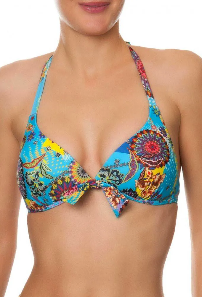 Ярко-голубой купальник-треугольники с пуш ап эффектом Antigel de Lise Charmel, французской марки класса люкс для маленькой груди.