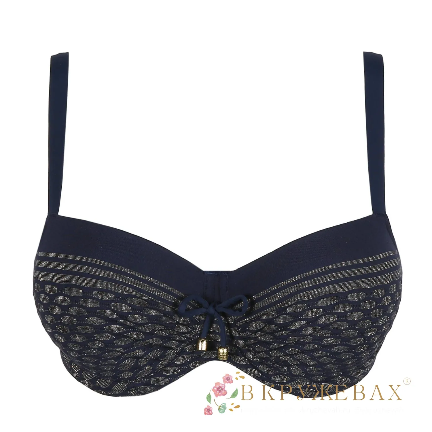 Очень эффектный купальник Primadonna в цвете "синий круизный". Темно-синий с золотом раздельный купальник с плотной чашкой. Роскошное сочетание изысканного глубокого оттенка синего с золотым мотивом в купальнике Primadonna Salsa.