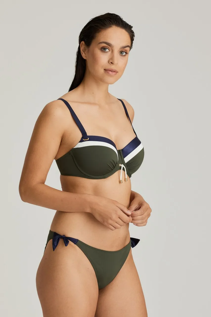 Верх раздельного купальника с плотными чашками Примадонна Оушен Драйв - Primadonna Ocean Drive BIKINI TOP BALCONY PADDED - Dark Olive DOL. Выполнен из текстурированной ткани, с роскошным шелковистым блеском - темно-зеленого цвета олива с синими и белыми вставками.