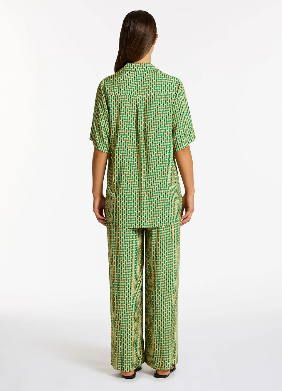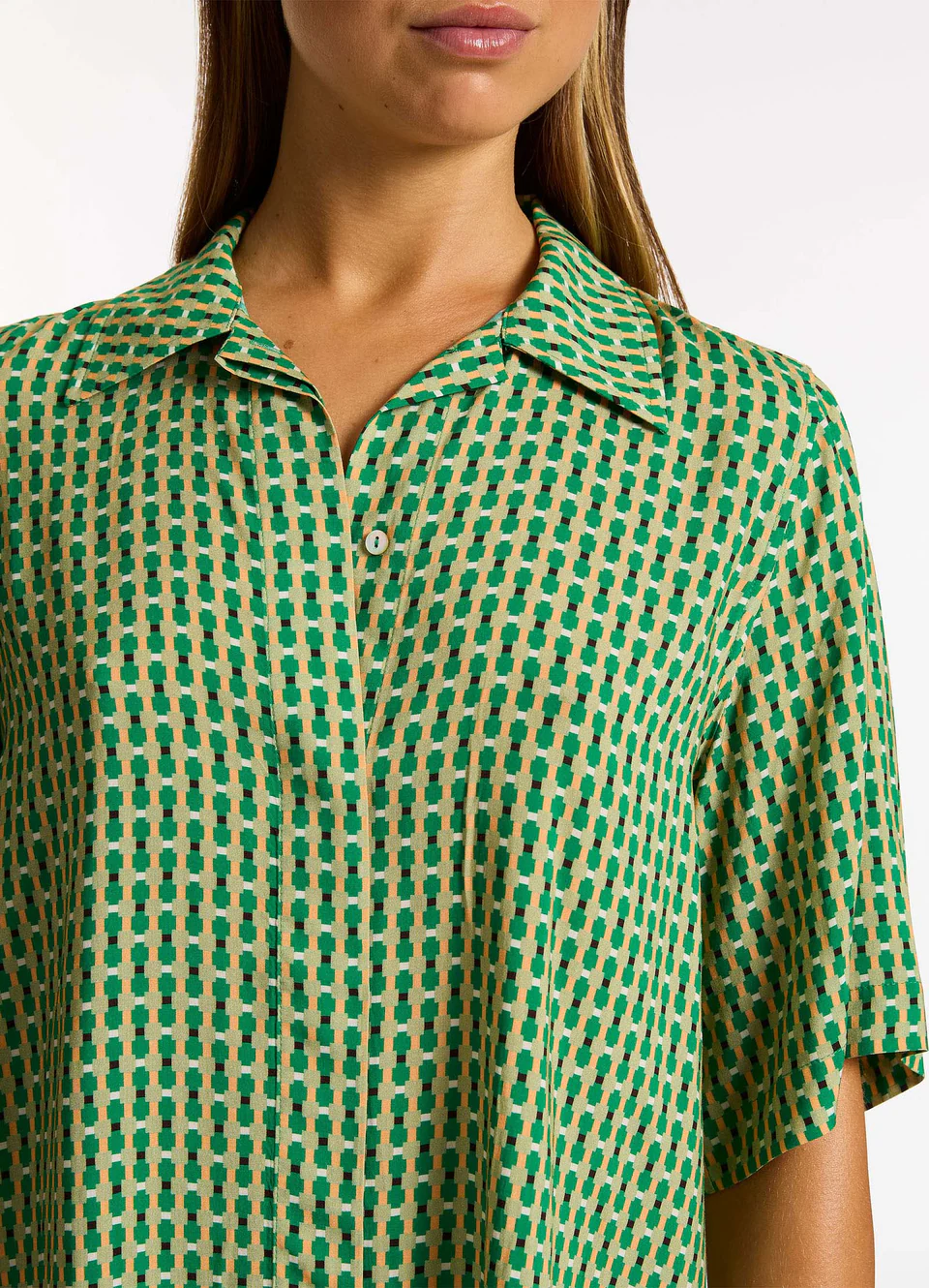 Рубашка с коротким рукавом Джетс Флора с геометрическим принтом в оттенках зелёного - Jets Mattala Geo Short Sleeve Shirt - Flora J61379. Выполнена из лёгкого струящегося материала - 100% вискоза, текстильное плотно. Классический треугольный воротник. Впереди - застёжка на пуговицы потайная, с кулиской.
