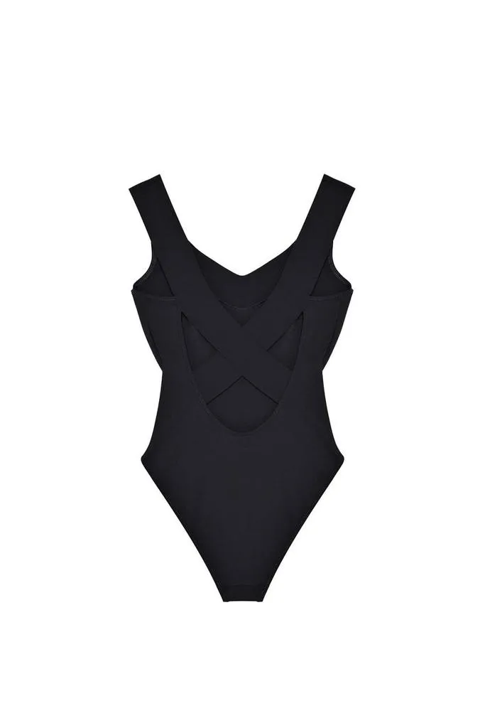 Слитный купальник Пан де Сюкр Сойя 61 черного цвета - Pain de Sucre Soya 61 noir. Классический силуэт, V-образная горловина с широкими бретелями фиксированной длины. Эффектная спинка с полосками крест-накрест. Такая конструкция создает легкий моделирующий эффект и поддерживает грудь. Бретели с лазерной обработкой края изделия.
