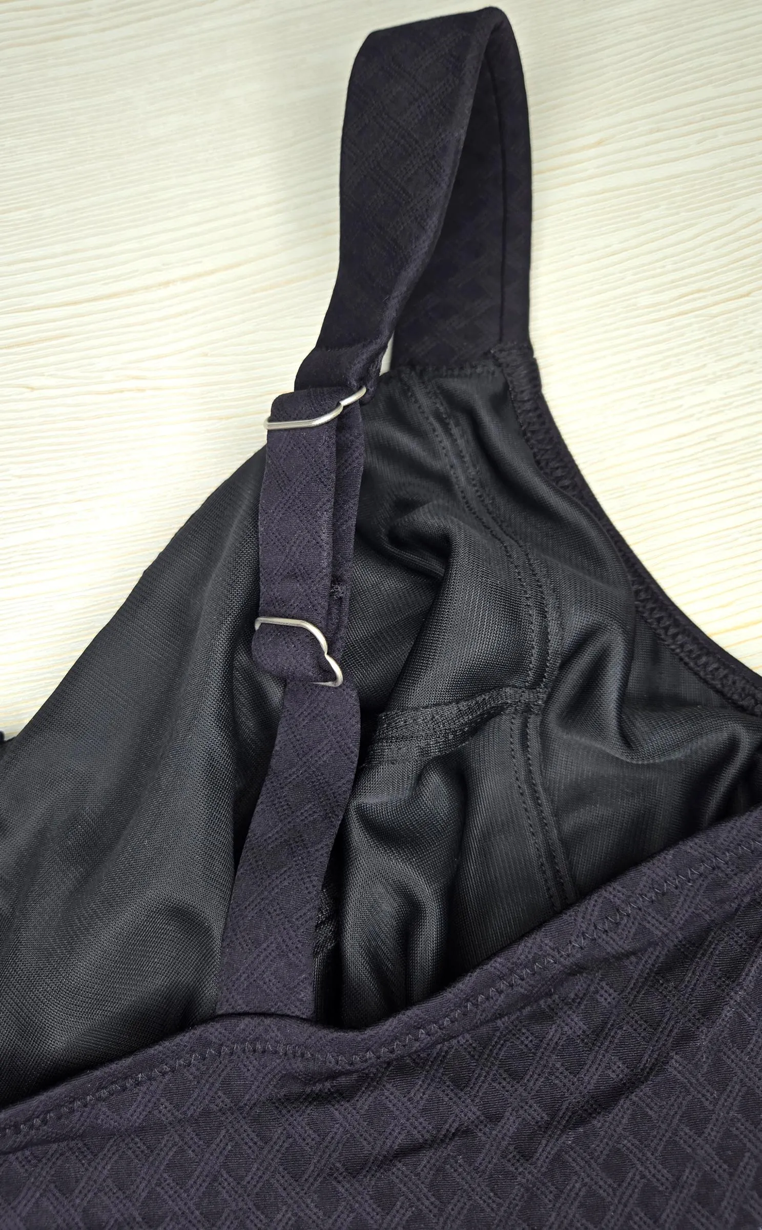 Слитный купальник большого размера Улла Сен-Тропе черного цвета - Ulla St. Tropez Badeanzug Cup B-K 91-12 Schwarz. Выполнен из плотной текстурной ткани. Внутренний слой - трехчастные чашки на хорошо обрамляющих грудь косточках и мягкий пояс-резинка для дополнительной поддержки и комфорта. Широкие бретели с регулировкой длины, на плечах - мягкая подложка, снижающая давление.