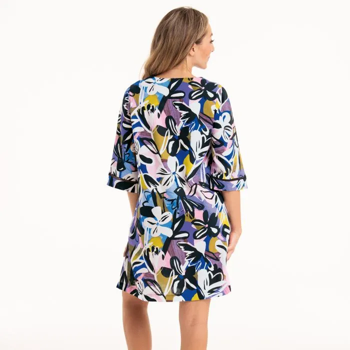 Платье-туника Анита Седона с разноцветным принтом - Anita Sedona Tuniс 8180 M25 401. Выполнено из лёгкого струящегося материала. V-образная горловина. Прямой крой. Длина - выше колен. Широкие рукава - 3/4.