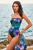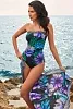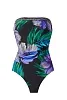 Моделирующий слитный купальник-бандо Мираклсьют Авани с крупными цветами на чёрном фоне - Miraclesuit Avanti One Piece in Flora Aura 6552342 BLM black / multi. Открытые плечи и декольте. Съёмные бретели - в комплекте. Гладкая мягкая чашка на косточках. Спина наполовину закрыта. По верхнему краю купальника проходит широкая эластичная окантовка, которая в сочетании с косточками и силиконовыми вставками отлично удерживает бандо на месте. Красивый цветочный принт в зелено-фиолетовых тонах.