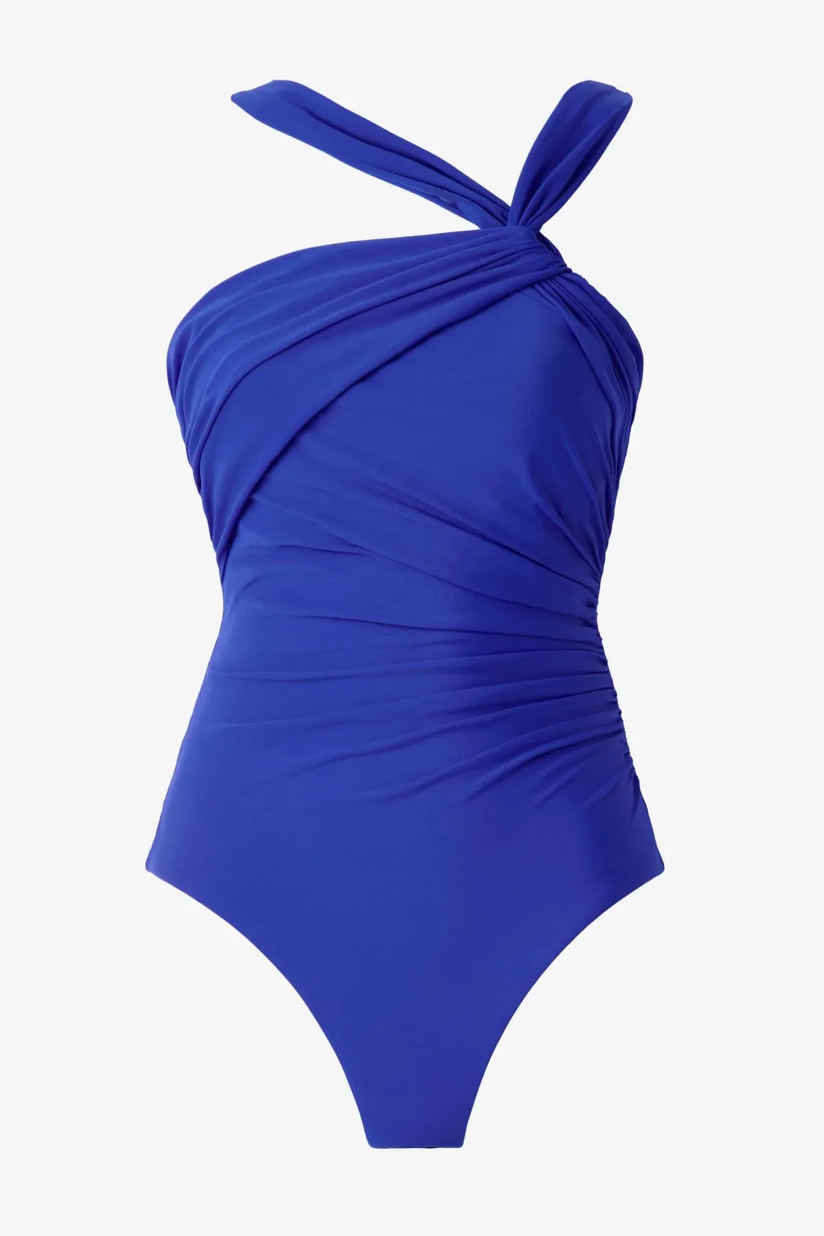 Утягивающий купальник c асимметричными бретелями Мираклсьют Европа однотонного ярко-синего цвета - Miraclesuit Europa One Piece Rock Solid Europa 6537021 DPN Delphine. Драпировки и текстура ткани создают моделирующий эффект.