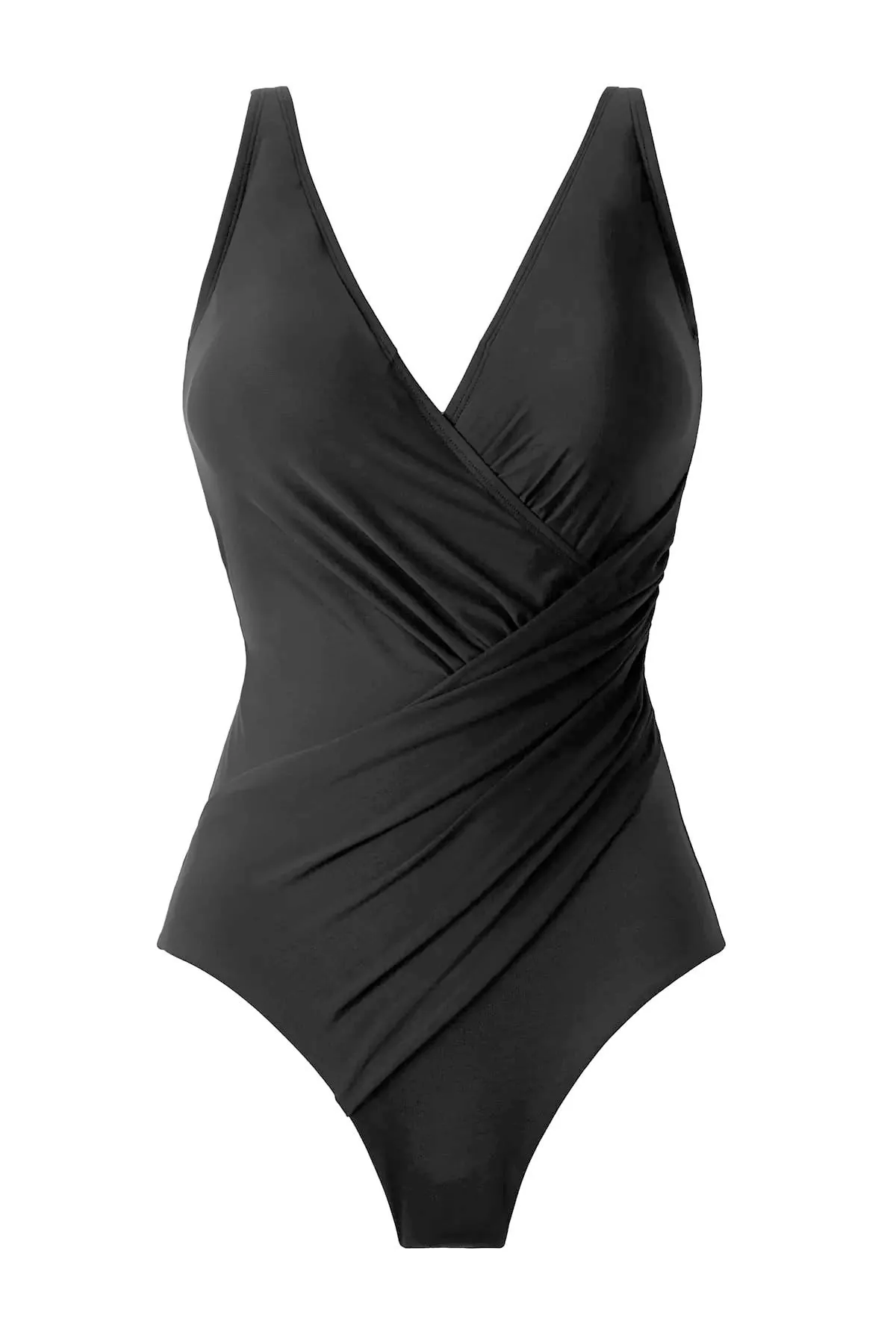 Благодаря асимметричному крою и перекрещивающимся драпировкам купальник создает утягивающий эффект и формирует красивый силуэт.