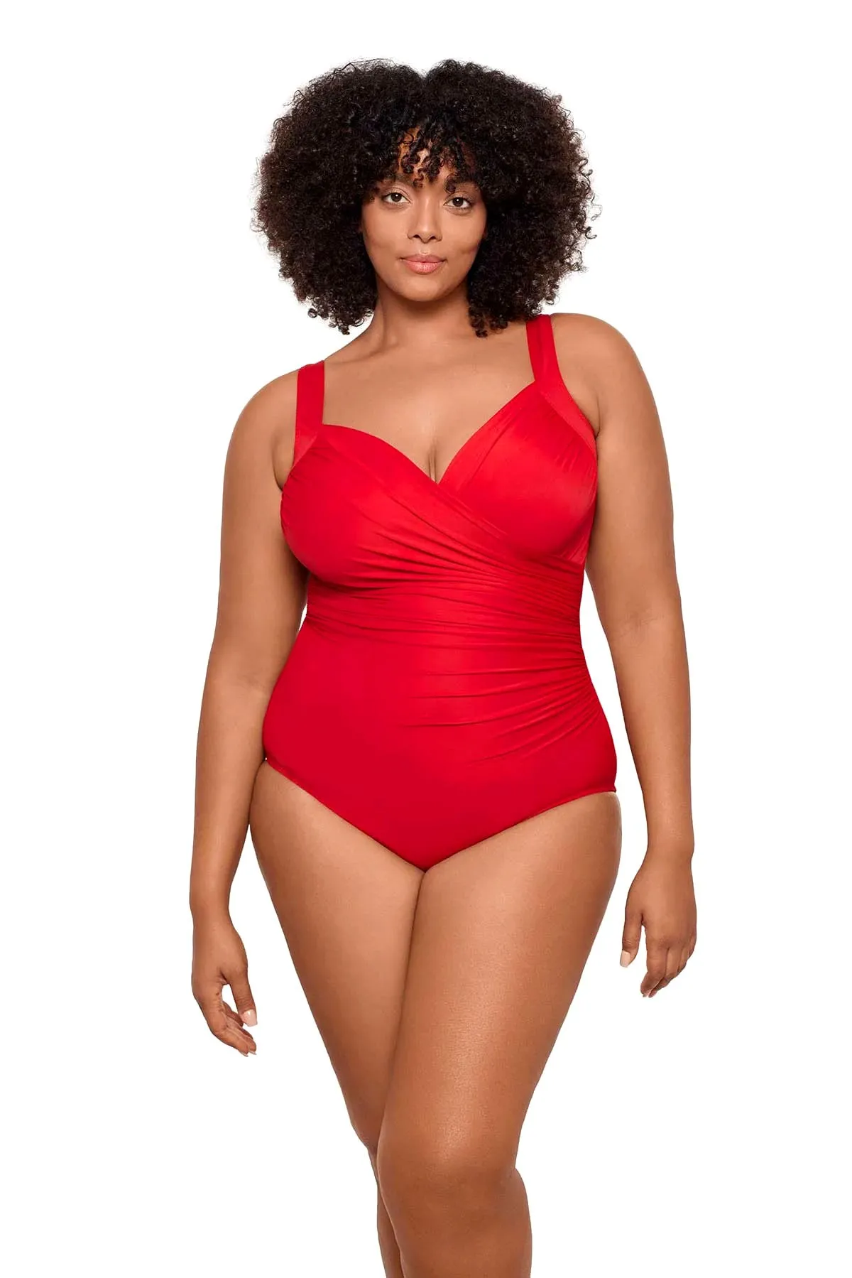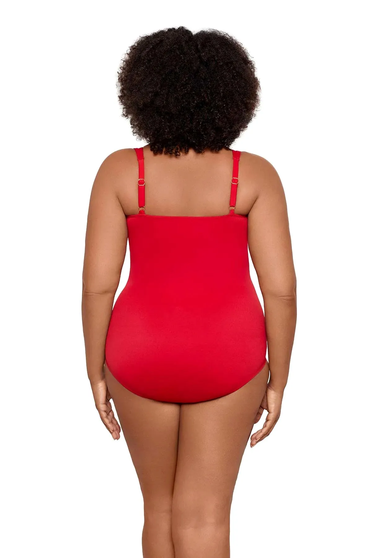 Слитный утягивающий купальник большого размера Мираклсьют Солидз, модель Санибель ярко-красного цвета кайенский перец - Miraclesuit Solids Sanibel 6518963 W CAY Cayenne. Модель для большого размера, специальная маркировкаW. Мягкая чашка на косточках. Узкие бретели с регулировкой длины, бретели хорошо поддерживают грудь. Очень хорошо моделирует - уменьшает объем талии, живота и бедер благодаря особой ткани и выразительным драпировкам впереди. Спина закрытая, вырез по линии бедер - умеренный, плотная ткань хорошо корректирует форму бедер.
