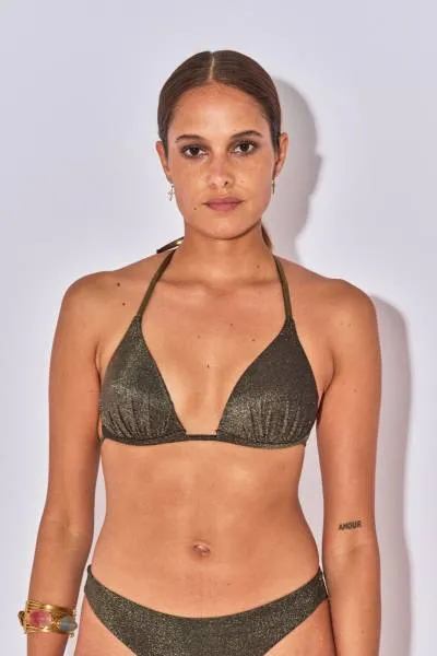 Верх купальника-треугольники с плотными чашками Белиза Кейт черный - Beliza KATEPADLX-NOIR TOP TRIANGLE AVEC PAD REMBOURRE. Красивая блестящая фактура с люрексовыми нитями. Треугольные чашки со сборкой у основания, с плотными чашками, которые хорошо сглаживают рельеф. Внутри чашек - интегрированные пуш ап чашки, которые поднимают грудь и создают соблазнительное декольте.