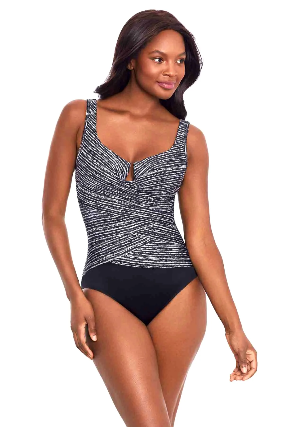 Утягивающий купальник Мираклсьют, модель Эскейп с геометрическим черно-белым принтом - Miraclesuit Layered Escape One Piece in Selenite 6552466 BLW.