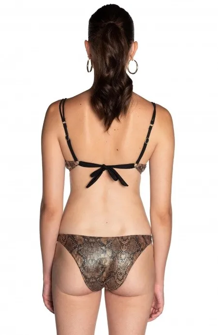 Модный раздельный купальник Пин Ап Старз с принтом рептилия, коричневый питон / анаконда - Pin Up Stars UNDERWIRED BIKINI SNAKE'S PRINT PF094F 009. Топ-балконет на косточках с удобными съемными уплотненными чашечками. Бретельки топа образованы двойными регулируемыми завязками, украшенными эффектными аксессуарами. Пояс топа завязывается - т.е. Вы можете полностью регулировать объем.