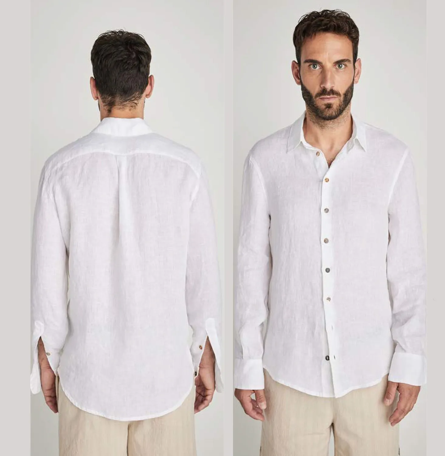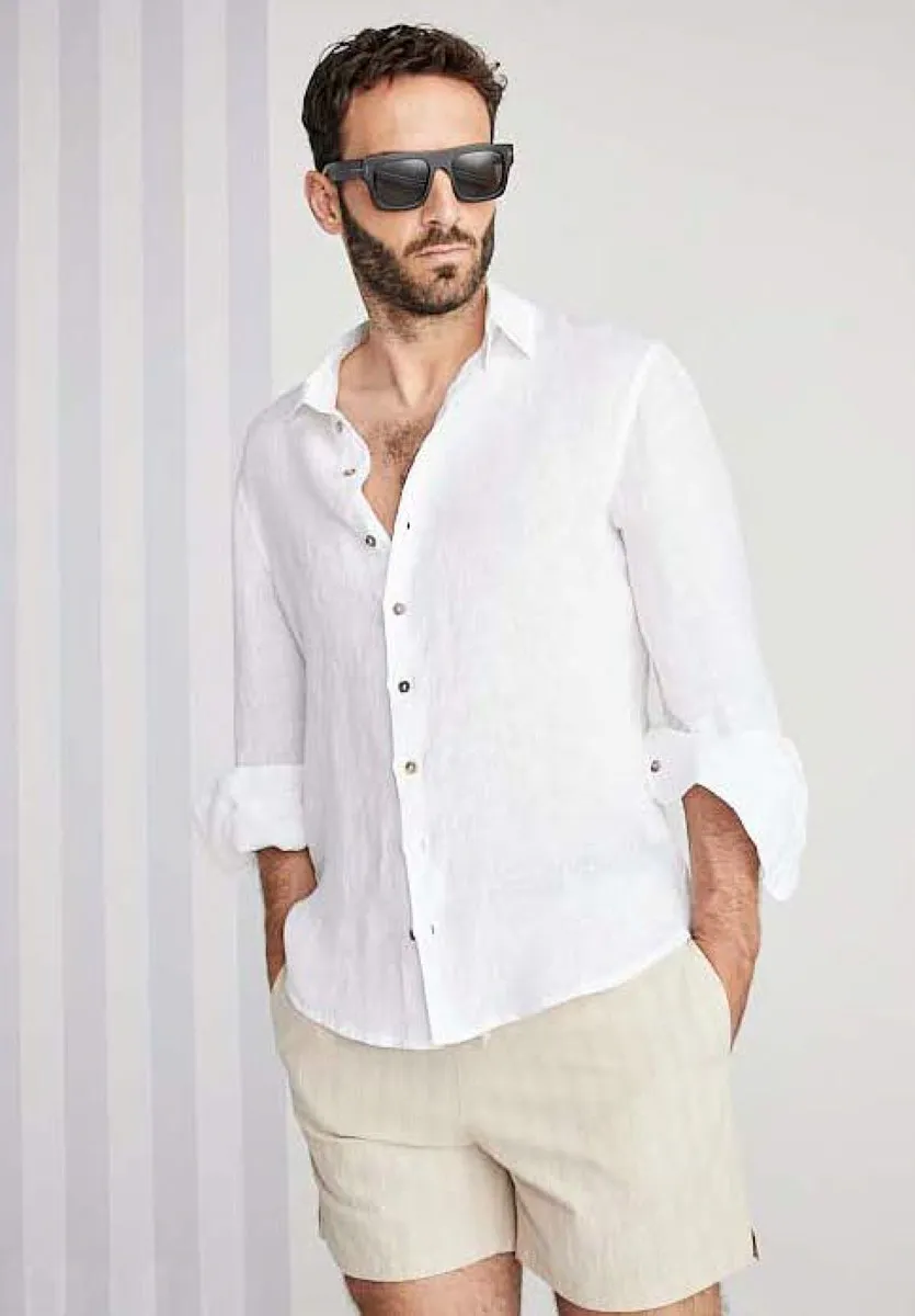 Итальянская мужская рубашка 40624 - 100% лён, белый - вк