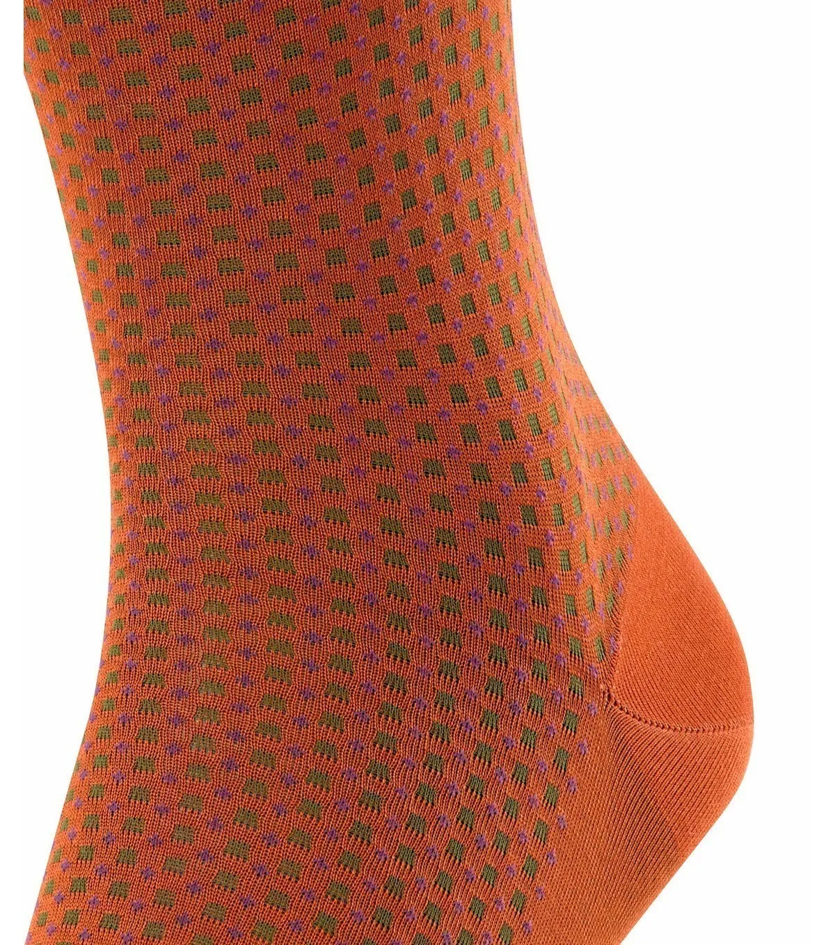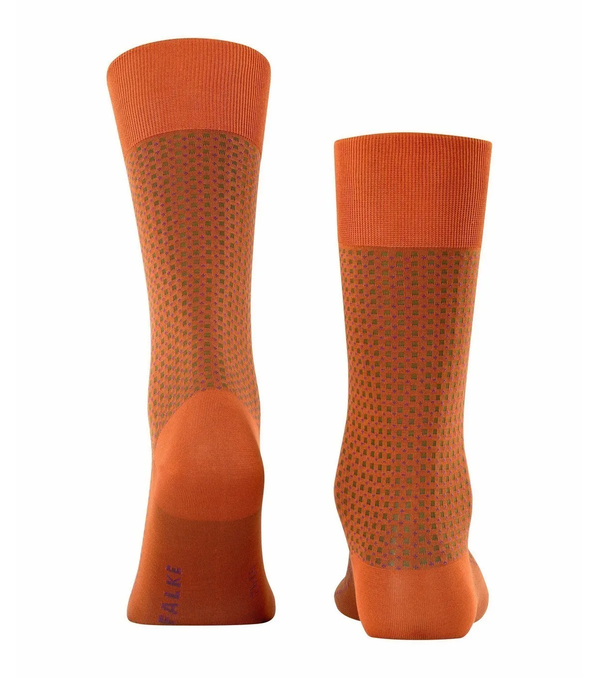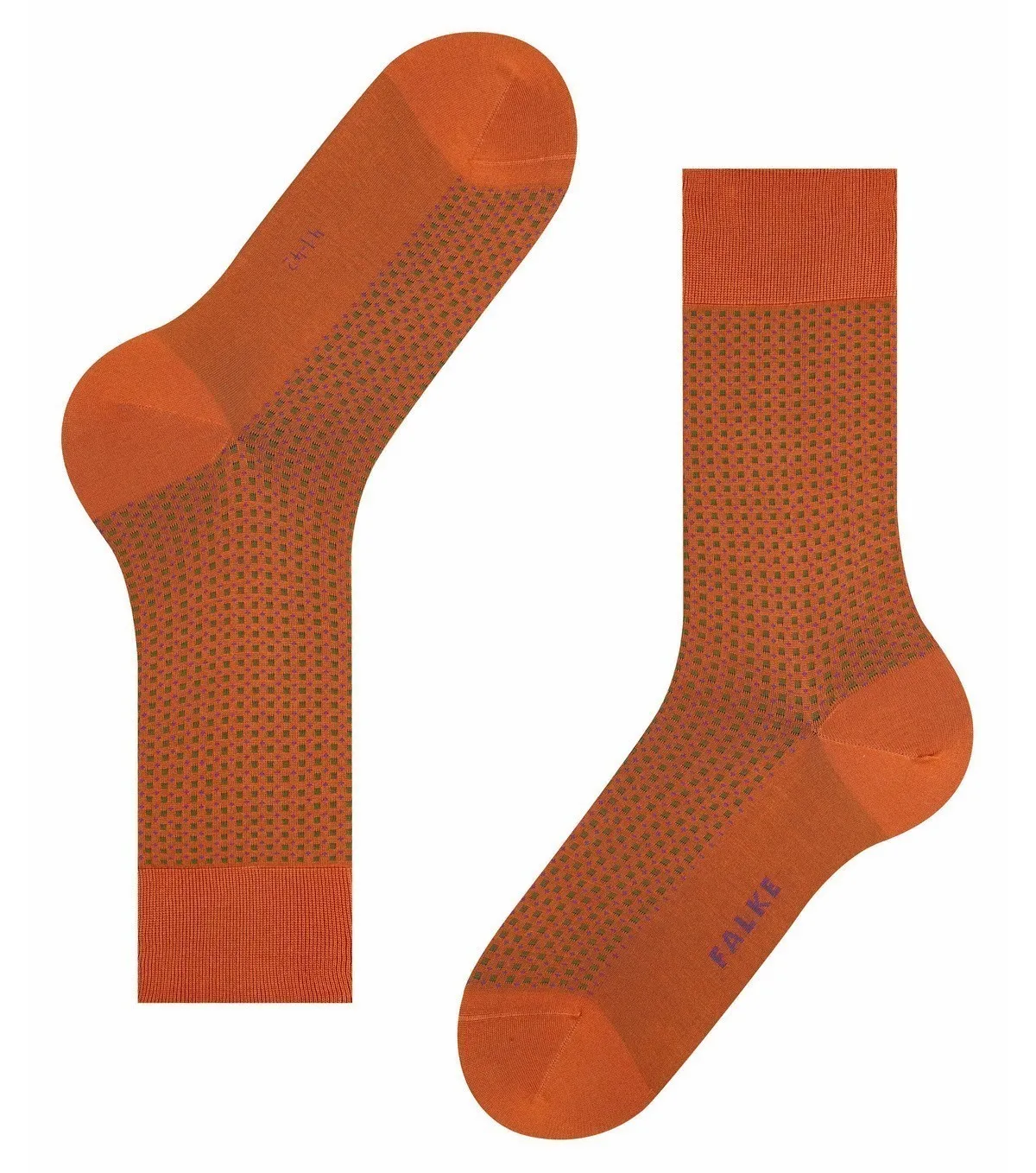 Носки Фальке Uptown Tie классической длины - ярко-оранжевого цвета. Мелкая геометрическая текстура контрастных оттенков, напоминающая традиционную расцветку галстука. Пятка и носок усилены для большей прочности. Хорошо сидят на ноге. Выполнены из высококачественного газированного и мерсеризованного хлопка - 83% хлопка в составе, добавление синтетической нити - для лучшей посадки.