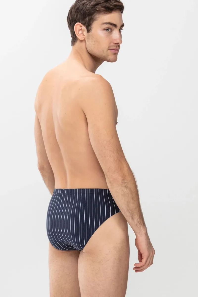 Мужские трусы слип Mey темно-синие в узкую полоску - Mey Slip Täby 16619 668 Yacht Blue - изумительное качество на каждый день. Выполнены из высококачественного хлопка, соответствующего стандарту OEKO TEX standart 100 - качества, гипоаллергенность, безопасность. 83% хлопок, 10% полиэстер, 7% эластан