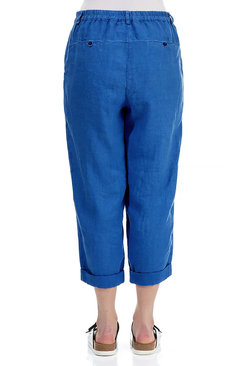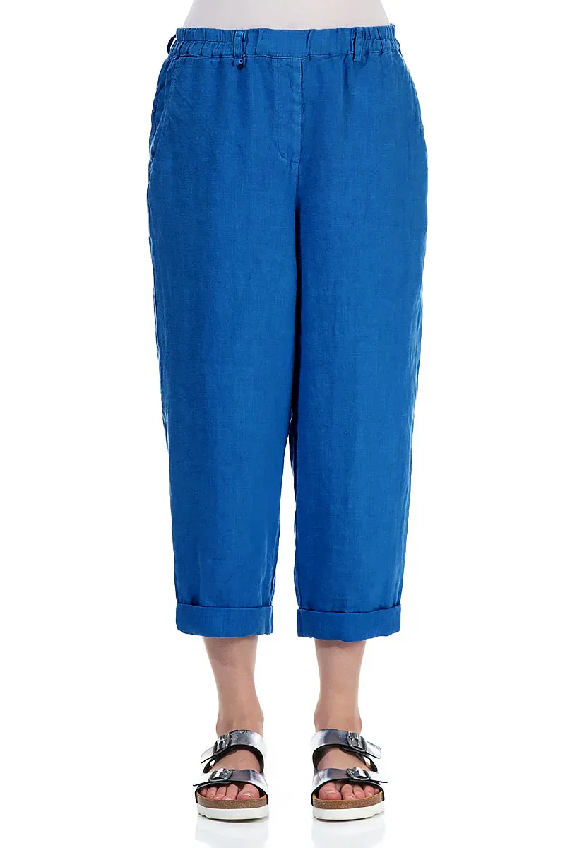 Брюки из умягченного льна с отворотом Гризас ярко-синего цвета кобальт - Grizas Roll Up Natural Linen Trousers 3713-L267 619 cobalt blue.