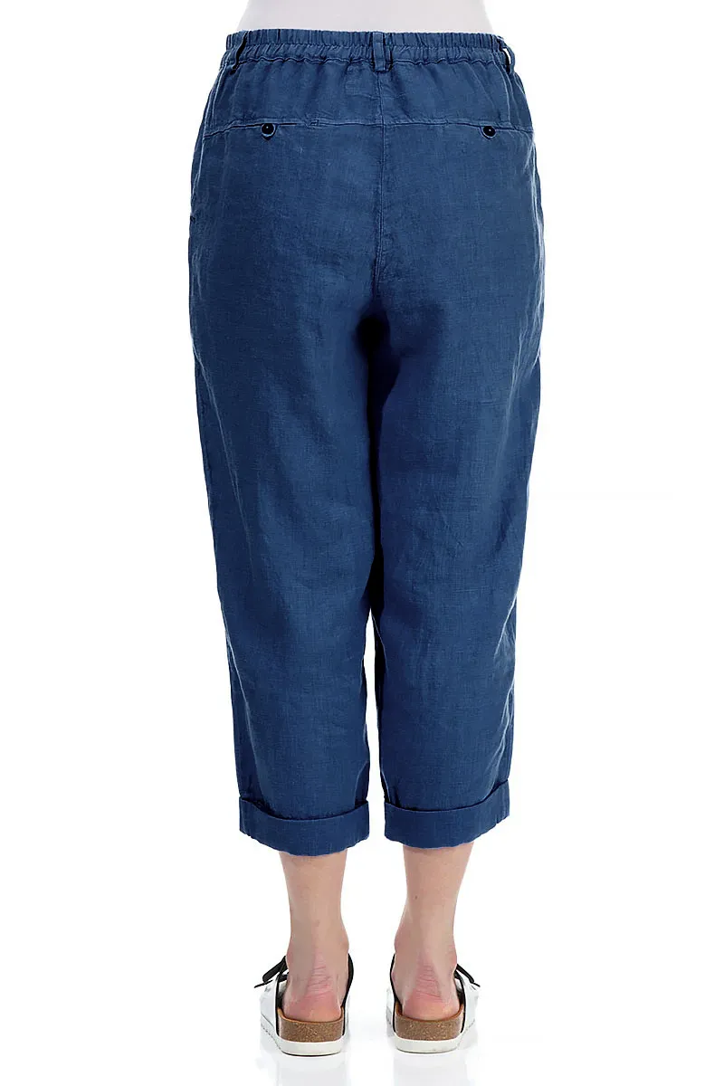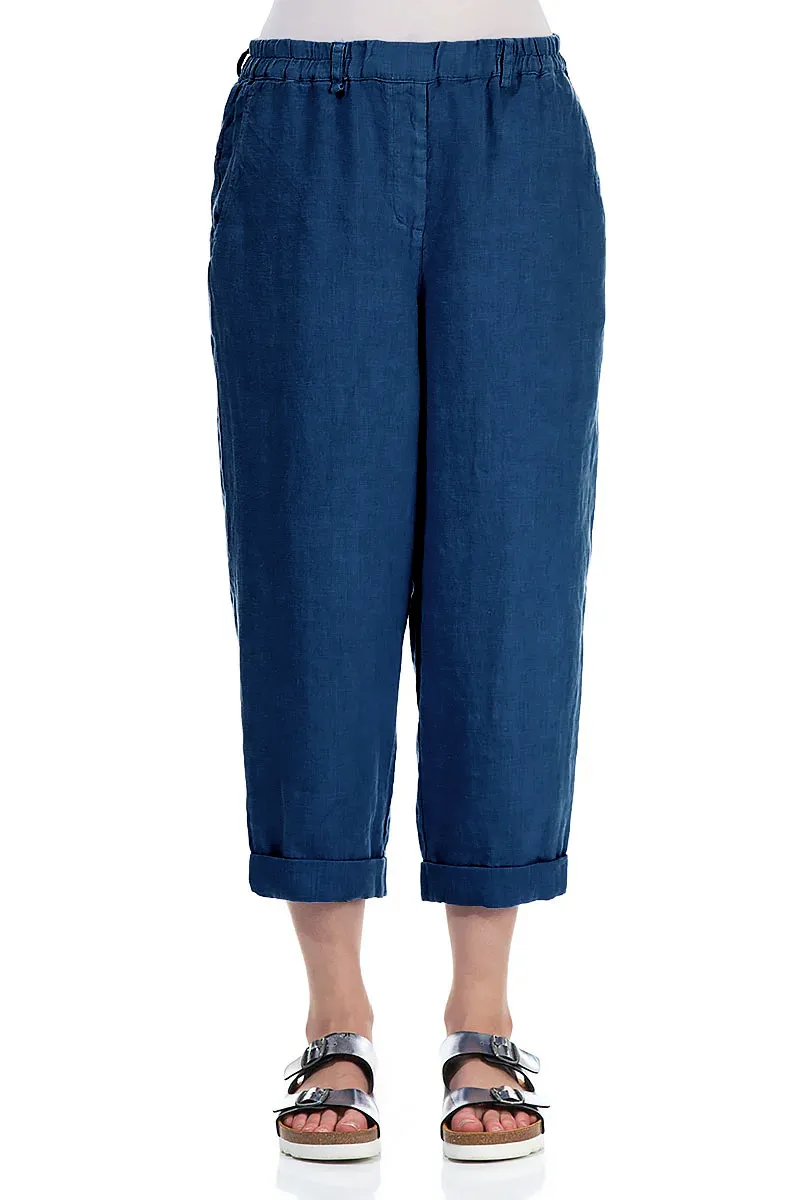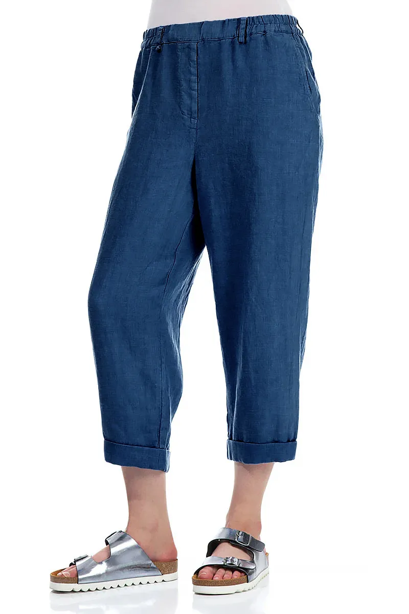 Брюки из умягченного льна с отворотом Гризас тёмно-синего цвета - Grizas Roll Up Natural Linen Trousers 3713-L267 620 navy.