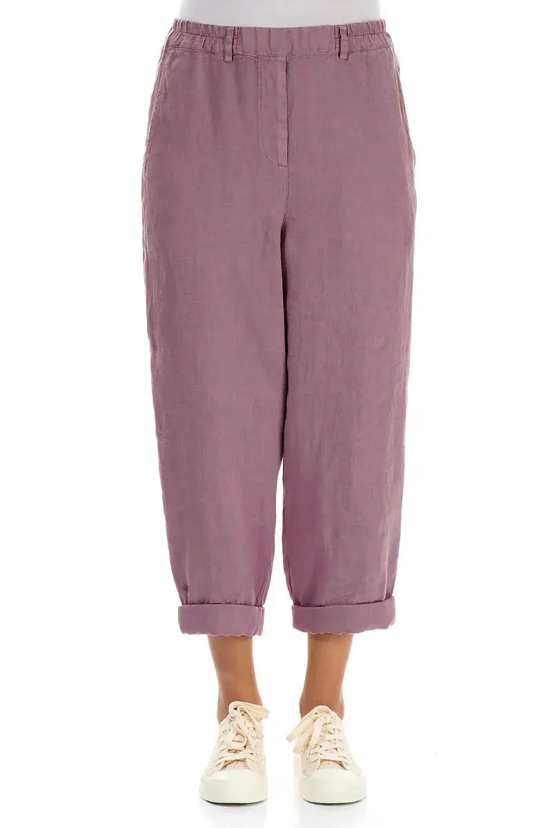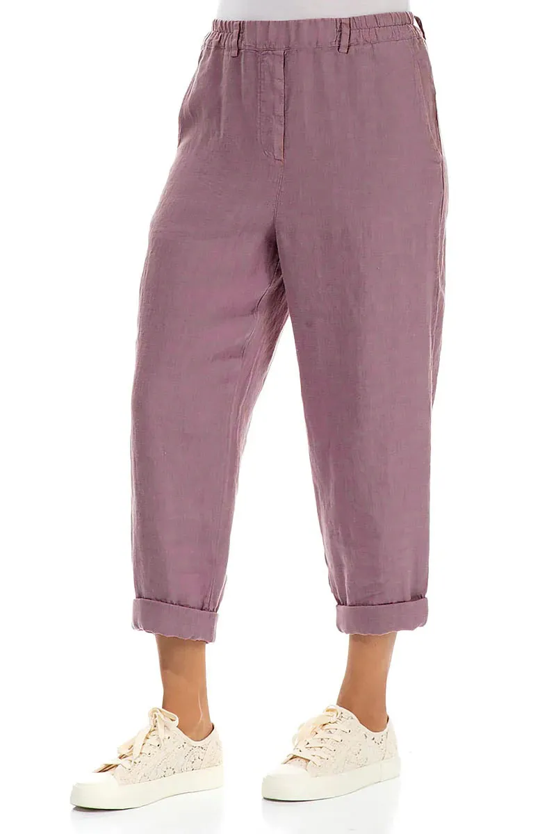 Брюки из умягченного льна с отворотом Гризас розового-фиолетового цвета пыльная роза, тауп - Grizas Roll Up Truffle Linen Trousers 3713-L532 602 mauve taupe.