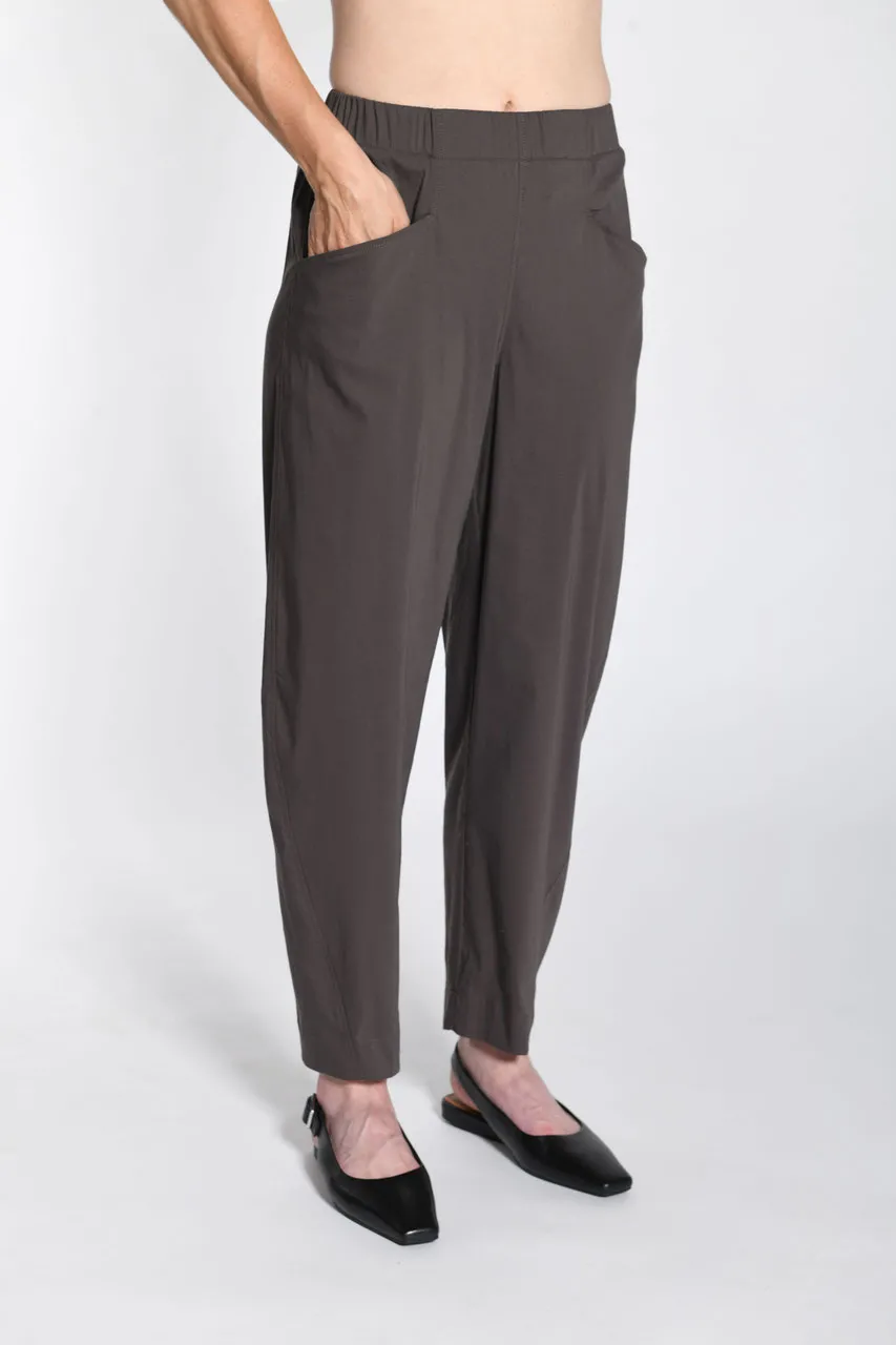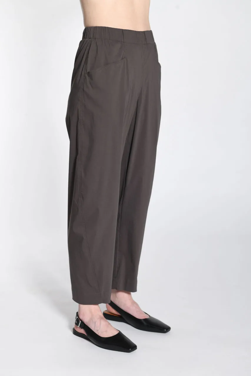 Лёгкие брюки Ветоно светло-бежевого цвета - Vetono 8627 046 358 sand coffee. Свободный крой с зауженными к низу брючинами, модные брюки-бананы. На широком поясе-резинке. Впереди - удобные карманы карманы.