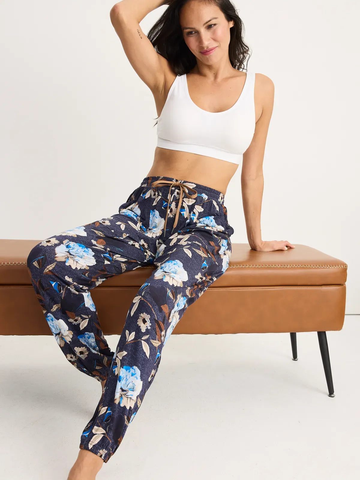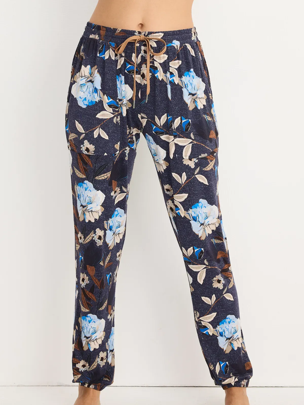 Женские брюки Жокей тёмно-синего цвета с цветочным принтом - Jockey® 8502242 B89. Приятный, струящийся материал 95% модал, 5% эластан.