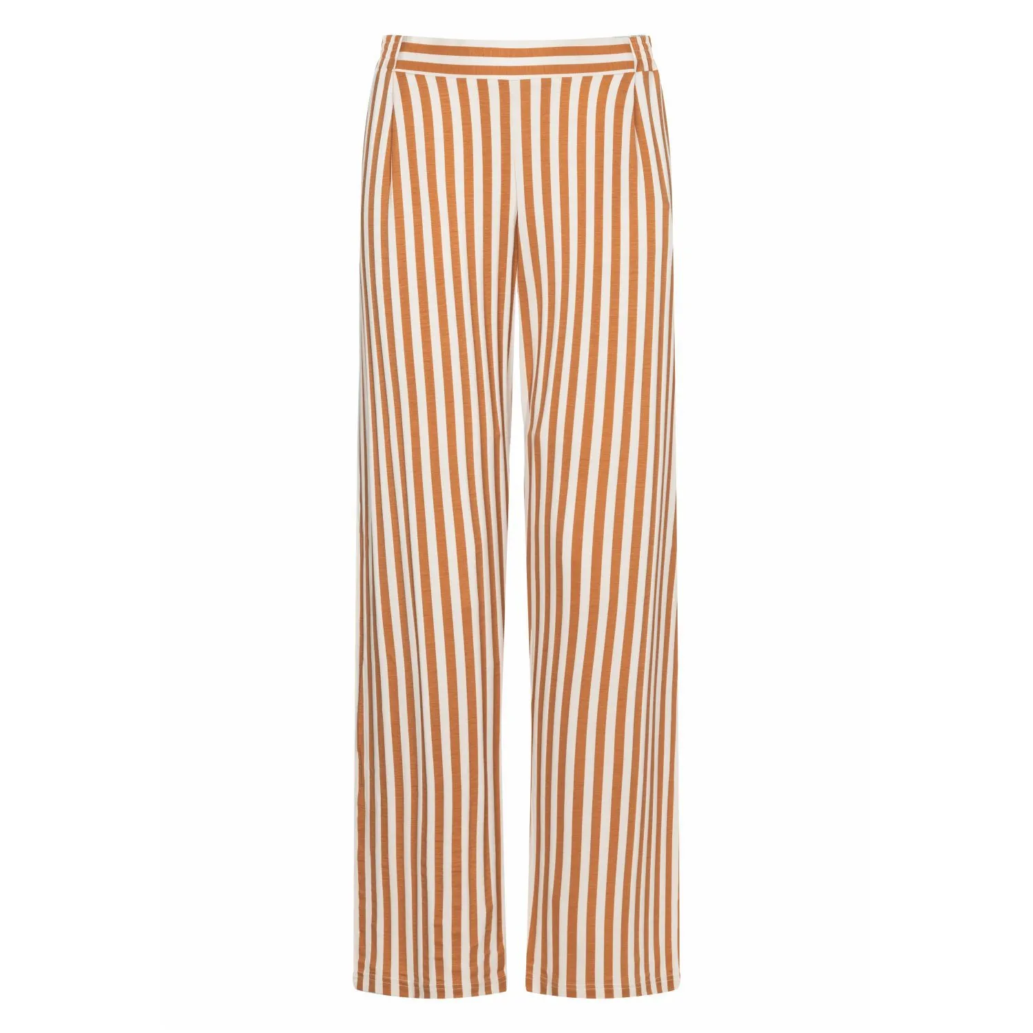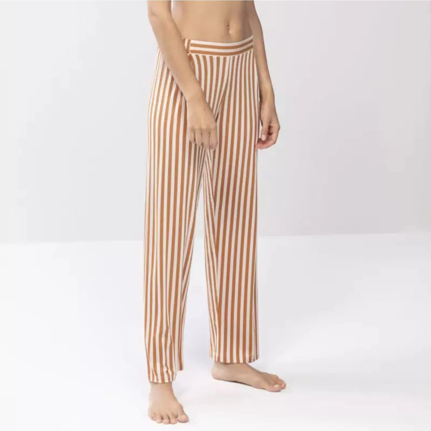 Домашние брюки из модала Мэй Стаси в коричневые полоски на белом фоне. по бокам и сзади - эластичный пояс-резинка. Выполнены из высококачественной трикотажной ткани: 94% модал TENCEL™, 6% эластан.