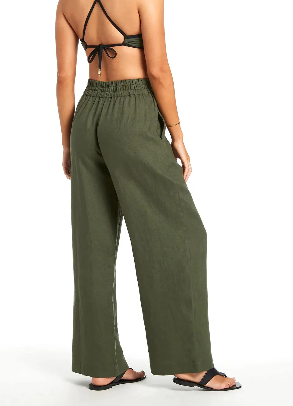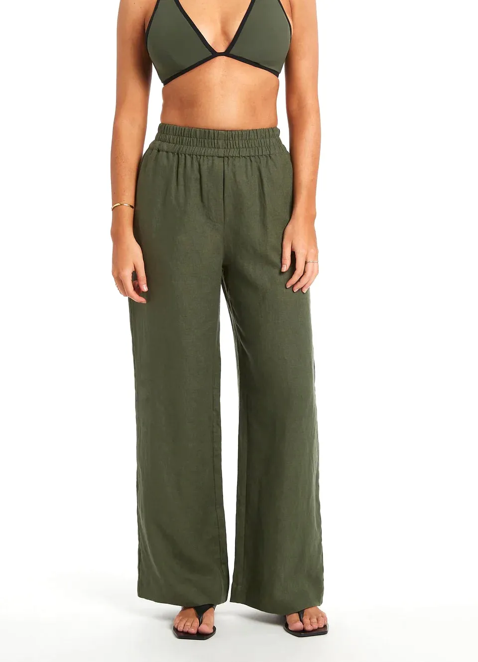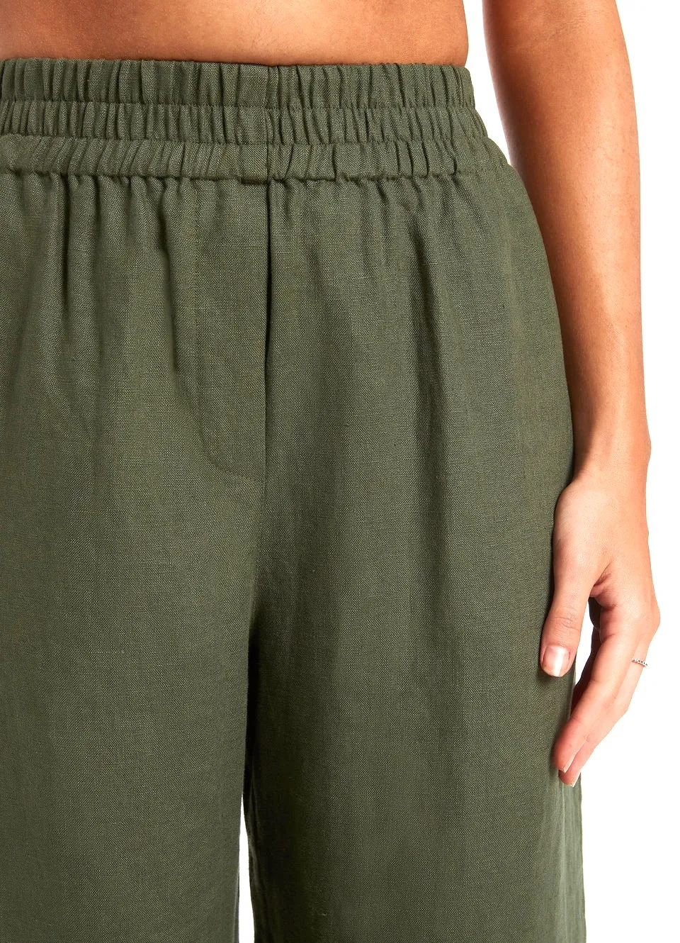 Широкие льняные брюки Джетс тёмно-зеленого цвета олива - Jets Jetset Wide Leg Pant J60868. 100% лен. На широком поясе-резинке, с боковыми карманами. Прямые от талии, со сборкой.