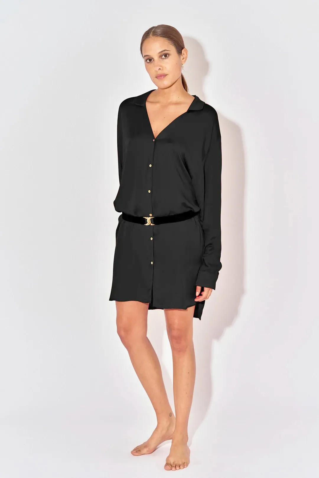 Пояс Белиза чёрный с золотистой фурнитурой - CEINTURE ELASTIQUE AVEC BIJOUX. 94% микромодал, 6% эластан