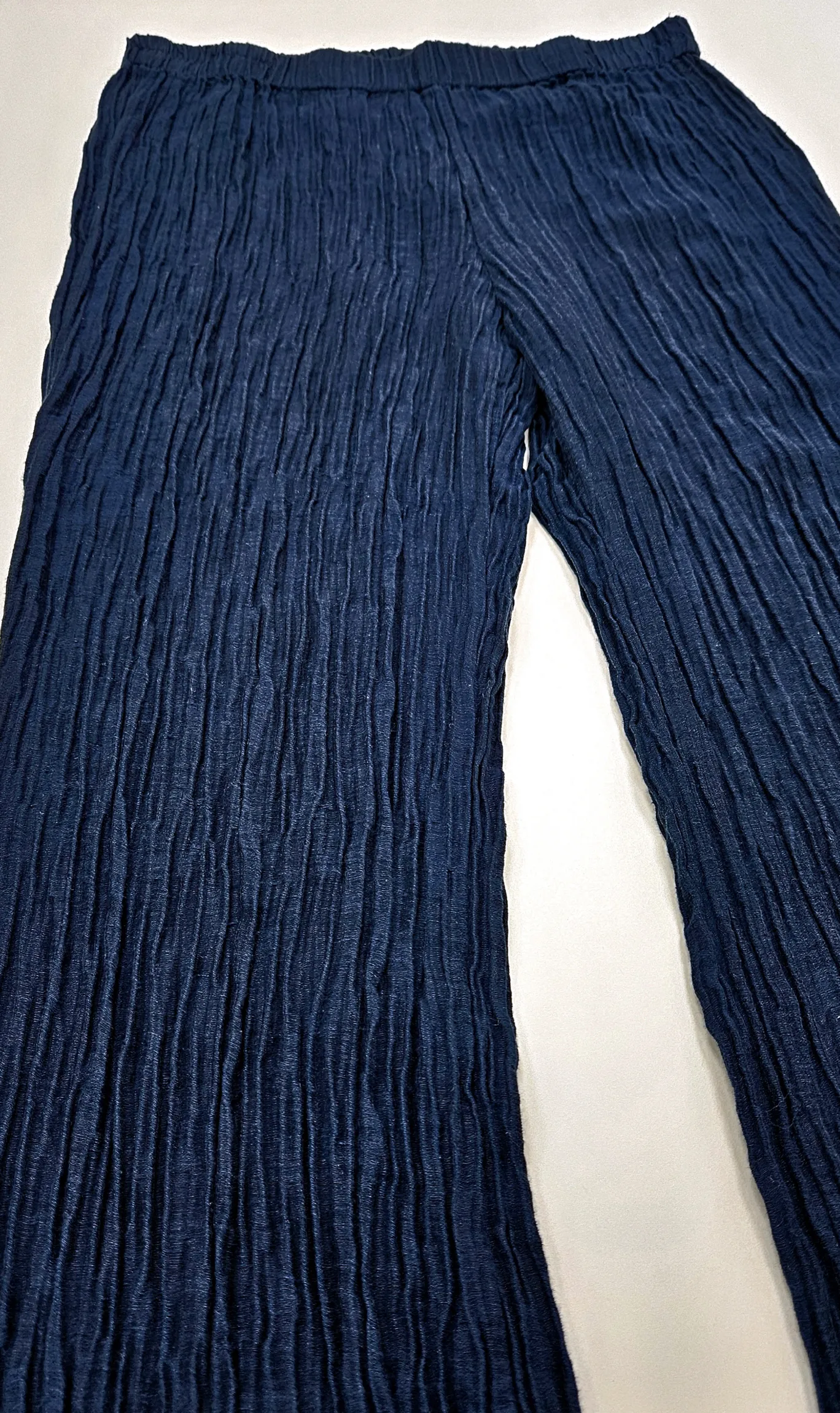 Роскошные брюки из жатого шёлка и льна Гризас тёмно-синего цвета - Grizas Flared Navy Crinkled Silk Trousers 3823-ST2 620 navy