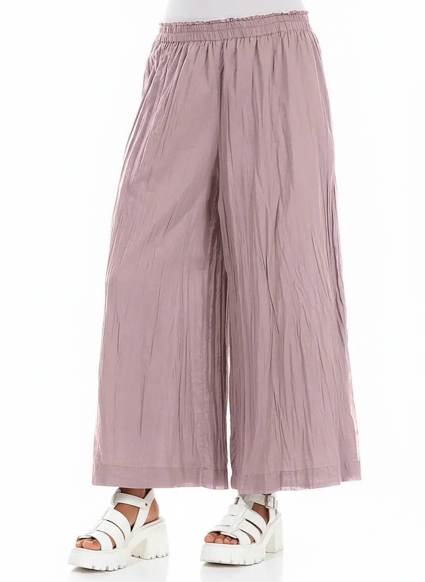Широкие брюки из жатого хлопка Гризас приглушённо-розового цвета тауп, пыльная роза - Grizas Wide Crumpled Cotton Trousers 3819/1-K34 602 mauve taupe. 100% хлопок.