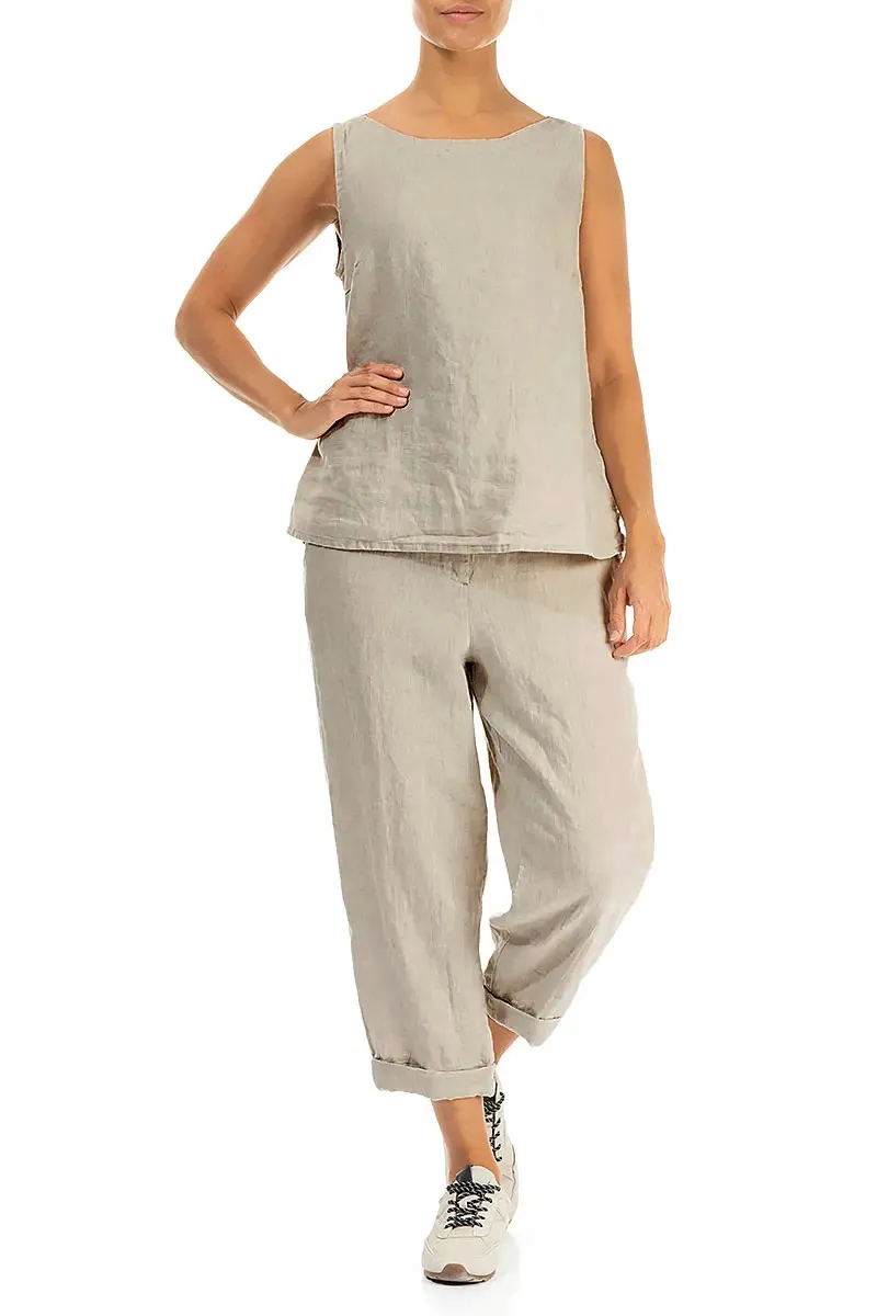Льняной топ без рукавов Grizas 52645/4-L267 0 - бежевый