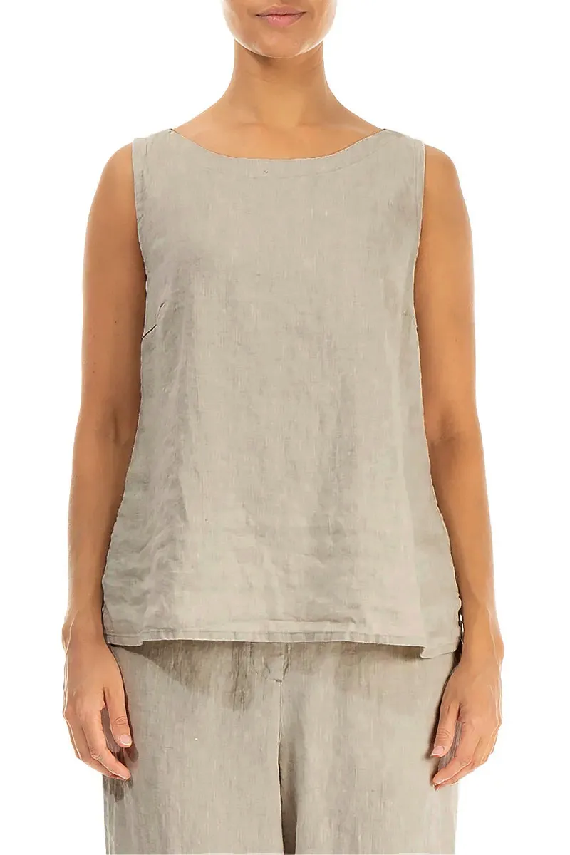 Лёгкий льняной топ без рукавов Grizas бежевого, светло-коричневого цвета - Grizas 52645/4-L267 0 beige. Выполнен из натурального льна. Ткань мягкая, воздушная, легко драпируется. Эффектная конструкция с чуть удлиненной спинкой. Свободный крой, расширяющийся к низу. Полукруглая горловина. Топ без рукавов с закрытыми плечами. Боковые вытачки обеспечивают оптимальную посадку.