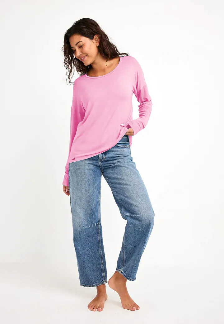 Женский лонгслив толстовка Жокей Суперсофт однотонная, розового цвета из трикотажного модала (вискоза) - Jockey Supersoft Lounge Long Sleeve Shirt 850018H - 704 beloved.