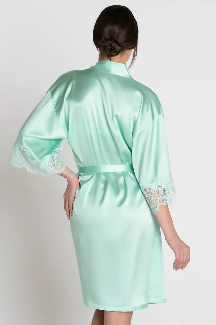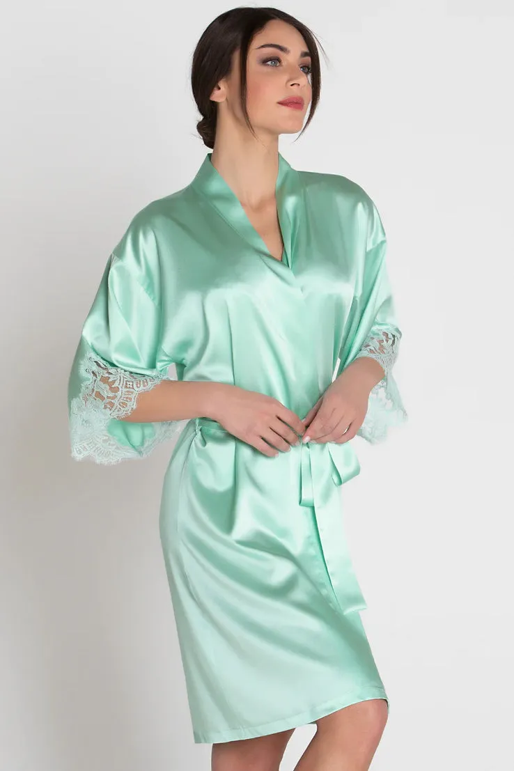 Тонкий халат из натурального шёлка с кружевом Лиз Шармель Амур Нимфея - Lise Charmele Amour Nymphea H59 2059 1454 jade aqua. Божественная линия Lise Charmel Amour Nymphéa - Нимфея любви с роскошной вышивкой. Основной тон - очень нежный светло-нефритовый оттенок. 91% натуральный шёлк, 6% хлопок, 3% полиамид