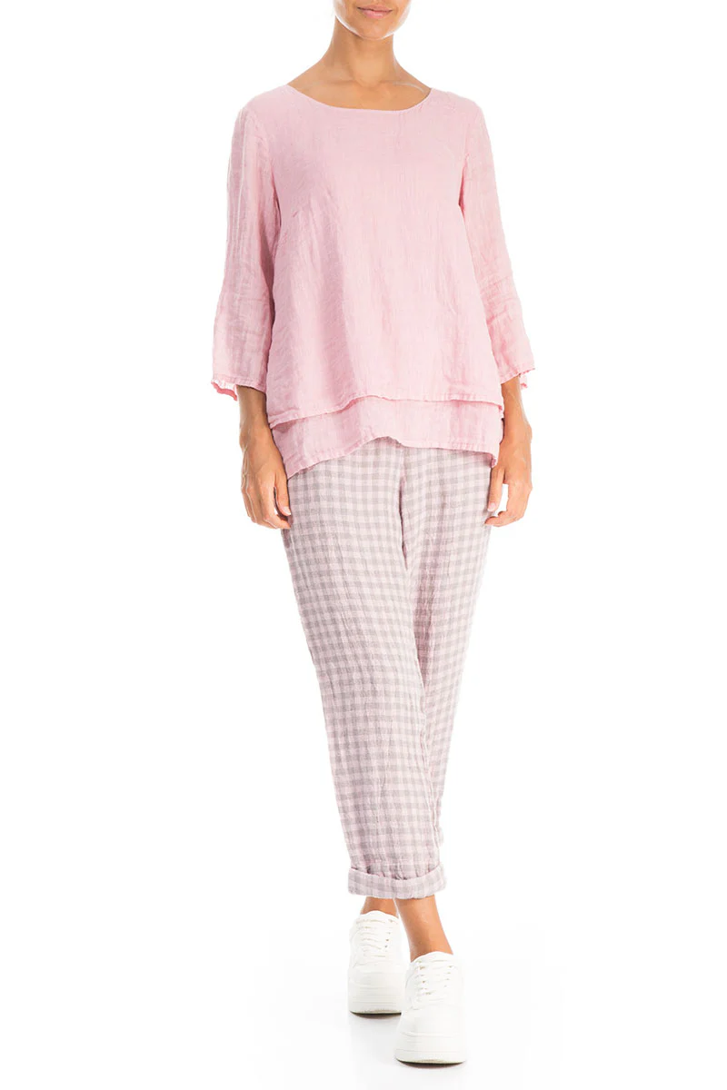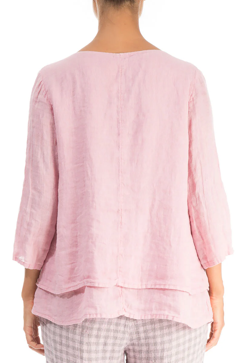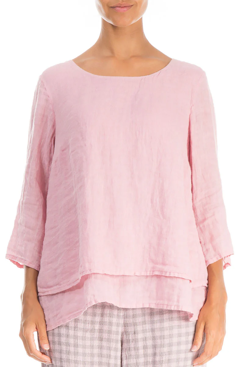 Блуза с рукавом 3/4 из льна-марлевки Гризас светло-розового цвета - Grizas Layered Gauze Linen Blouse 52496/6-L6 600 powder pink. 100% умягчённый лён.