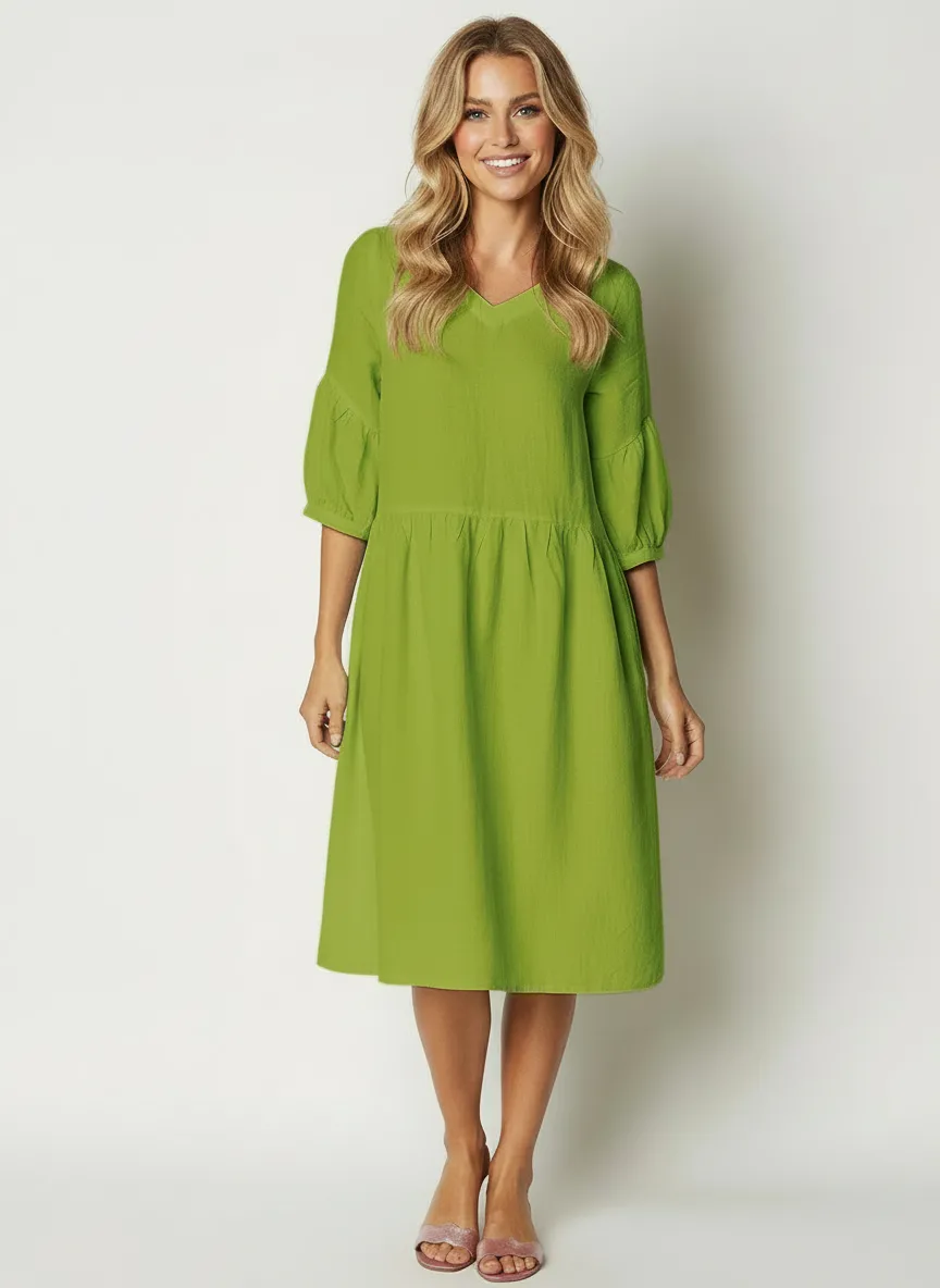 Платье Тринити умягченный лен - лайм