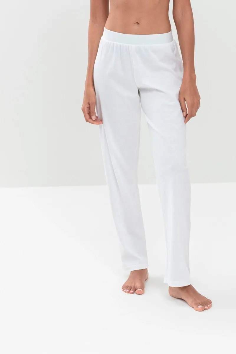 Пижамные брюки Мей Слипсейшн белого цвета - Mey Sleepsation hose 1/1 lange gots 17204. На эластичном поясе-резинке. 100% хлопковый трикотаж роскошного качества, экологически чистый.