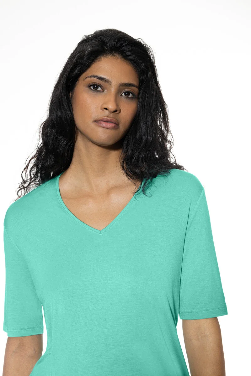 Футболка Мей Шик бирюзового цвета морская волна - Mey Serie Pure Chic 1210052 1258 Seafoam. V-образная горловина, короткий рукав, прямой крой.